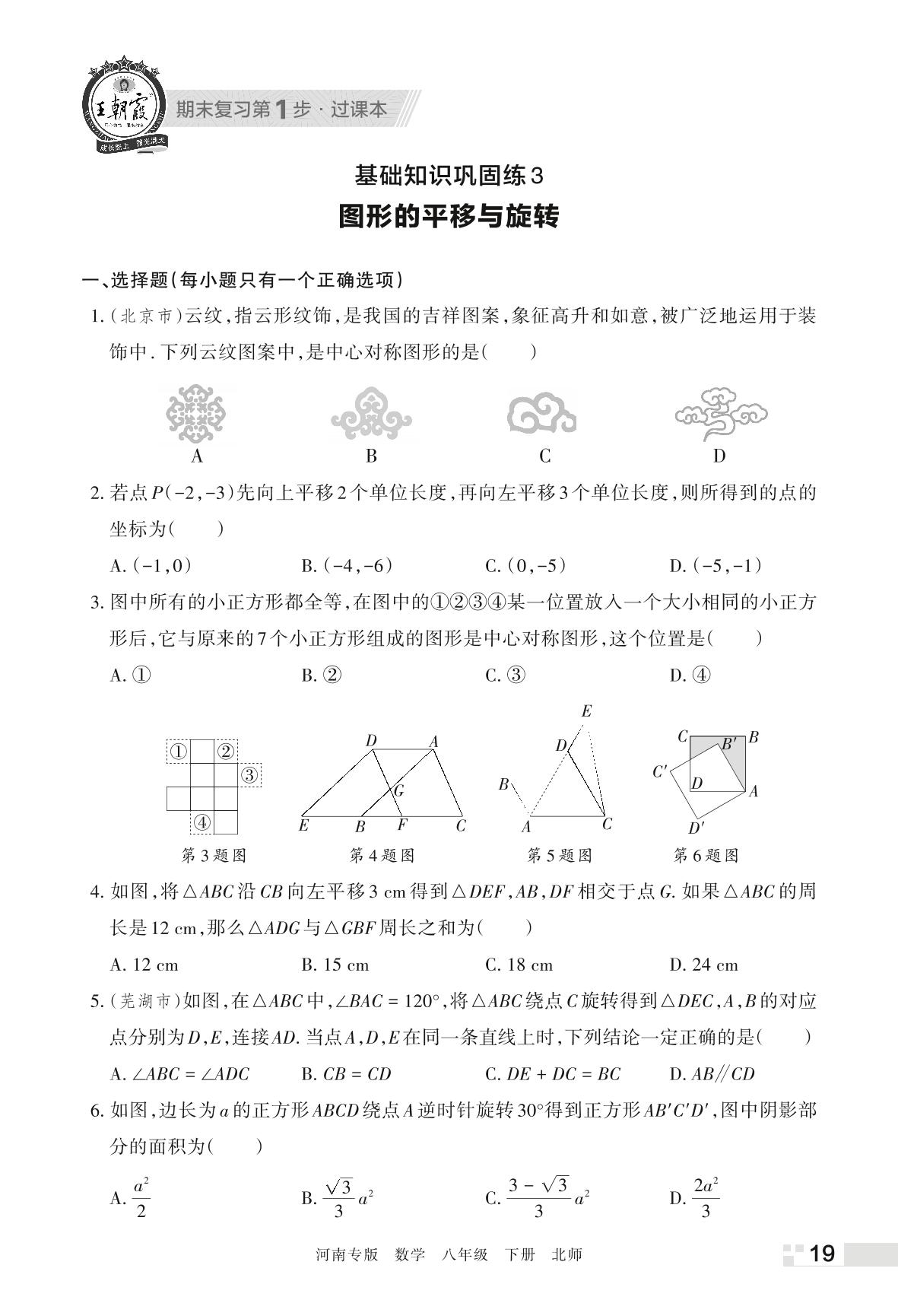 王朝霞期末过课本——基础知识巩固练3 图形的平移与旋转八年级下册数学(北师版)_R220322165105768