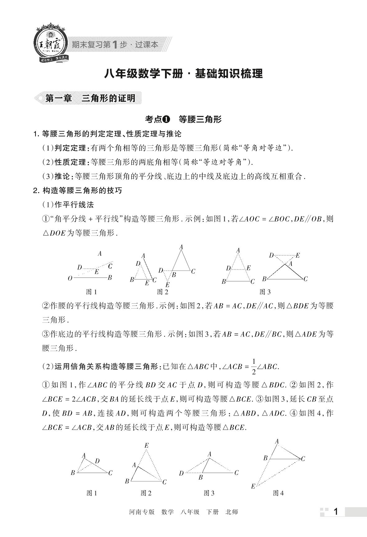 王朝霞期末过课本——基础知识梳理八年级下册数学(北师版)_R220322165105694