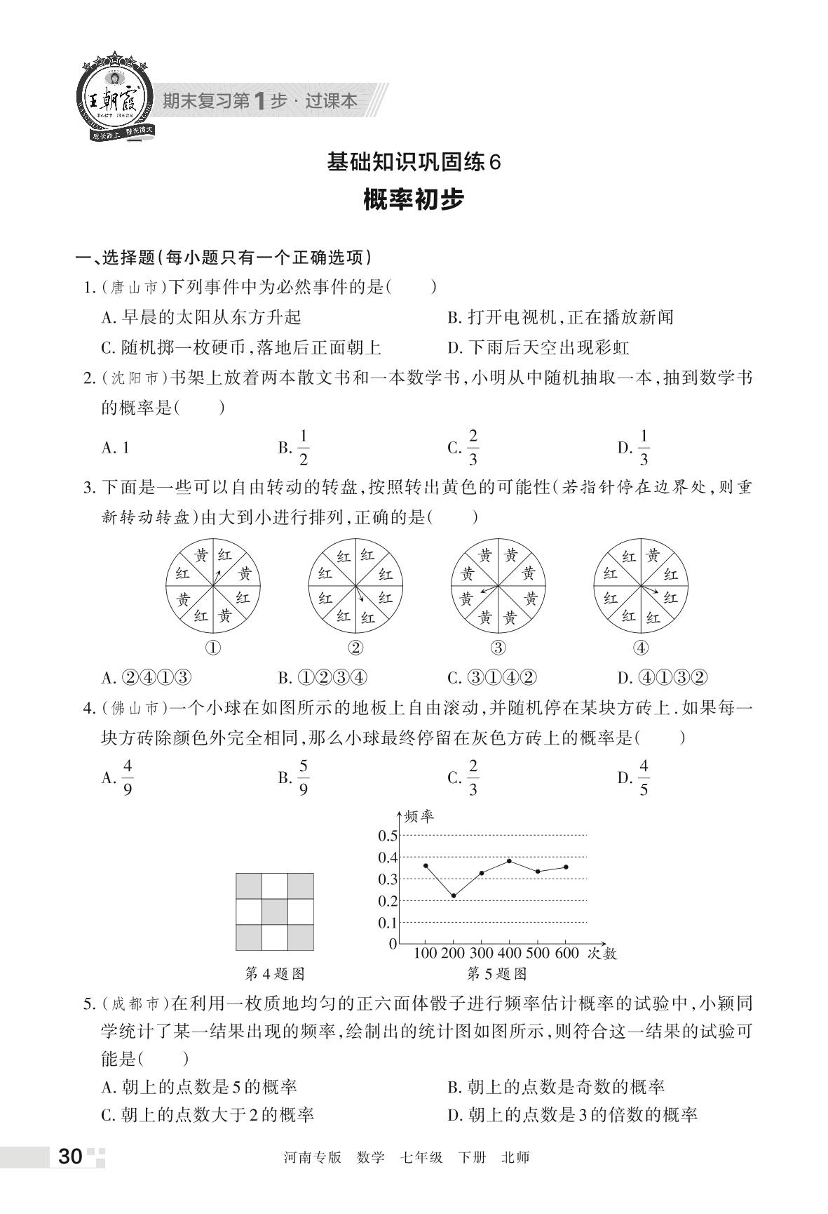 王朝霞期末过课本——基础知识巩固练6 概率初步七年级下册数学(北师版)_R220322170019176
