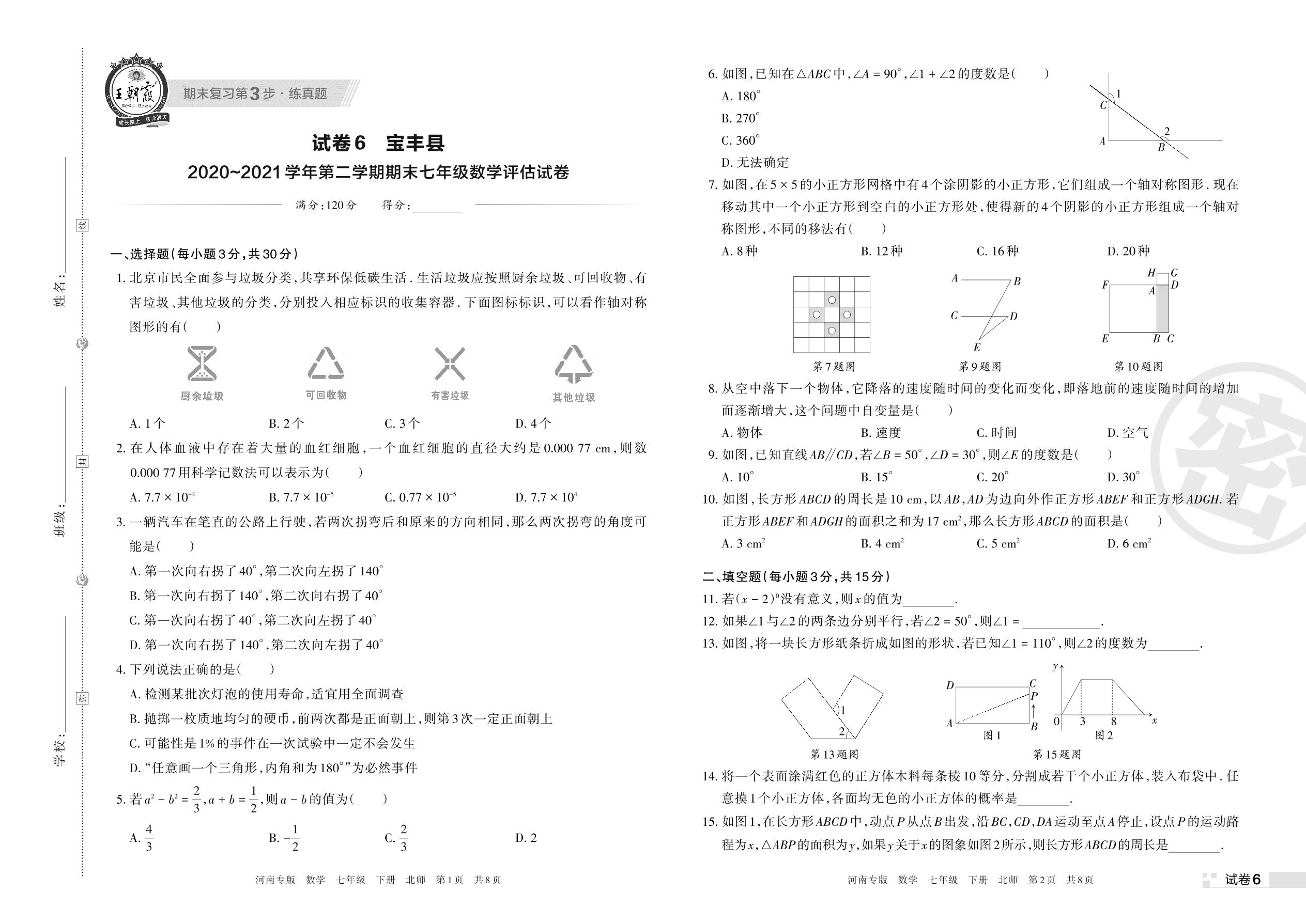 宝丰县2020~2021学年第二学期期末七年级数学评估试卷(北师版)【6】