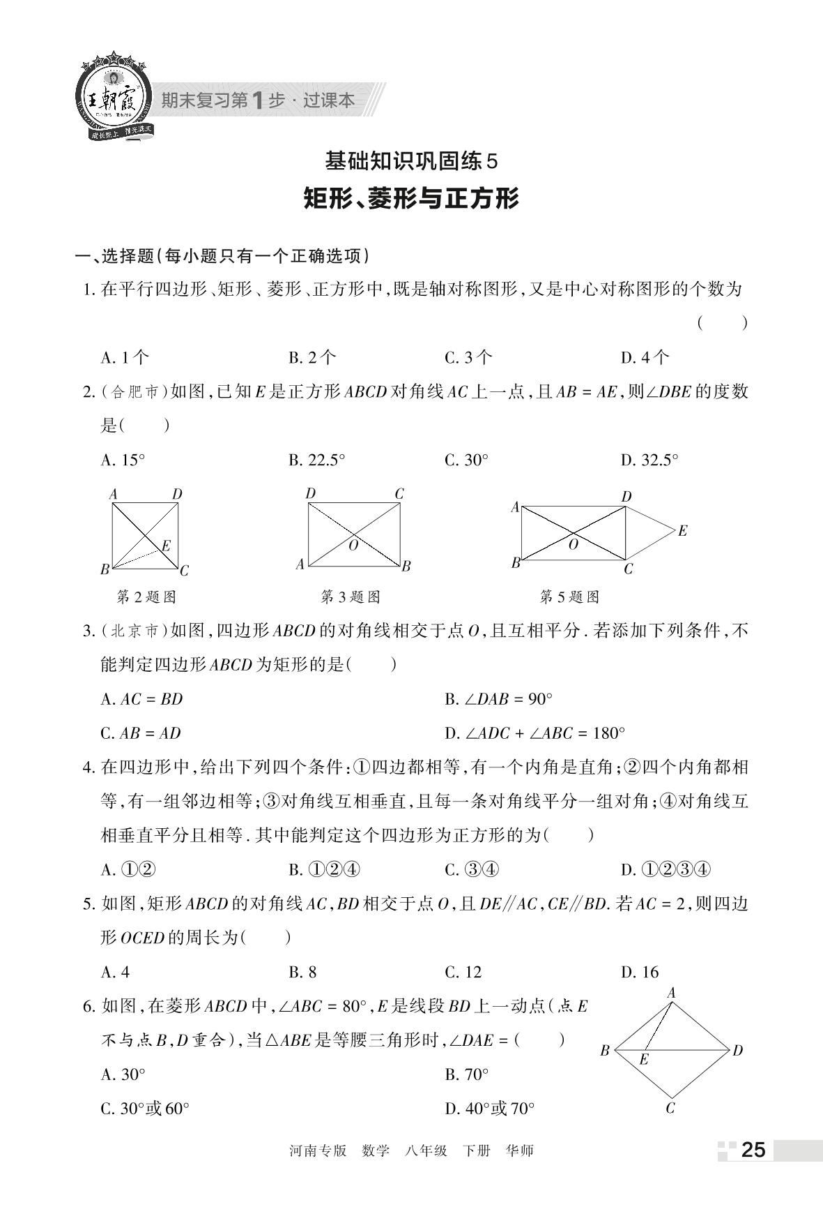 王朝霞期末过课本——基础知识巩固练5 矩形、菱形与正方形八年级下册数学(华师版)_R220322170813576