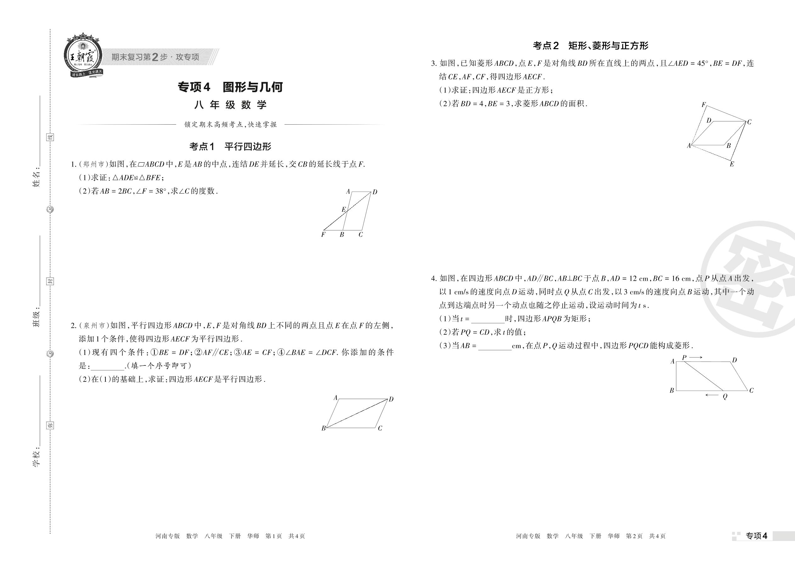 王朝霞期末专项卷——图形与几何八年级下册数学(华师版)_R220322170814036【4】