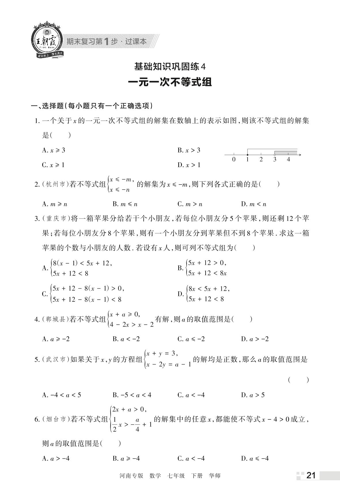 王朝霞期末过课本——基础知识巩固练4 一元一次不等式组七年级下册数学(华师版)_R220322171506612