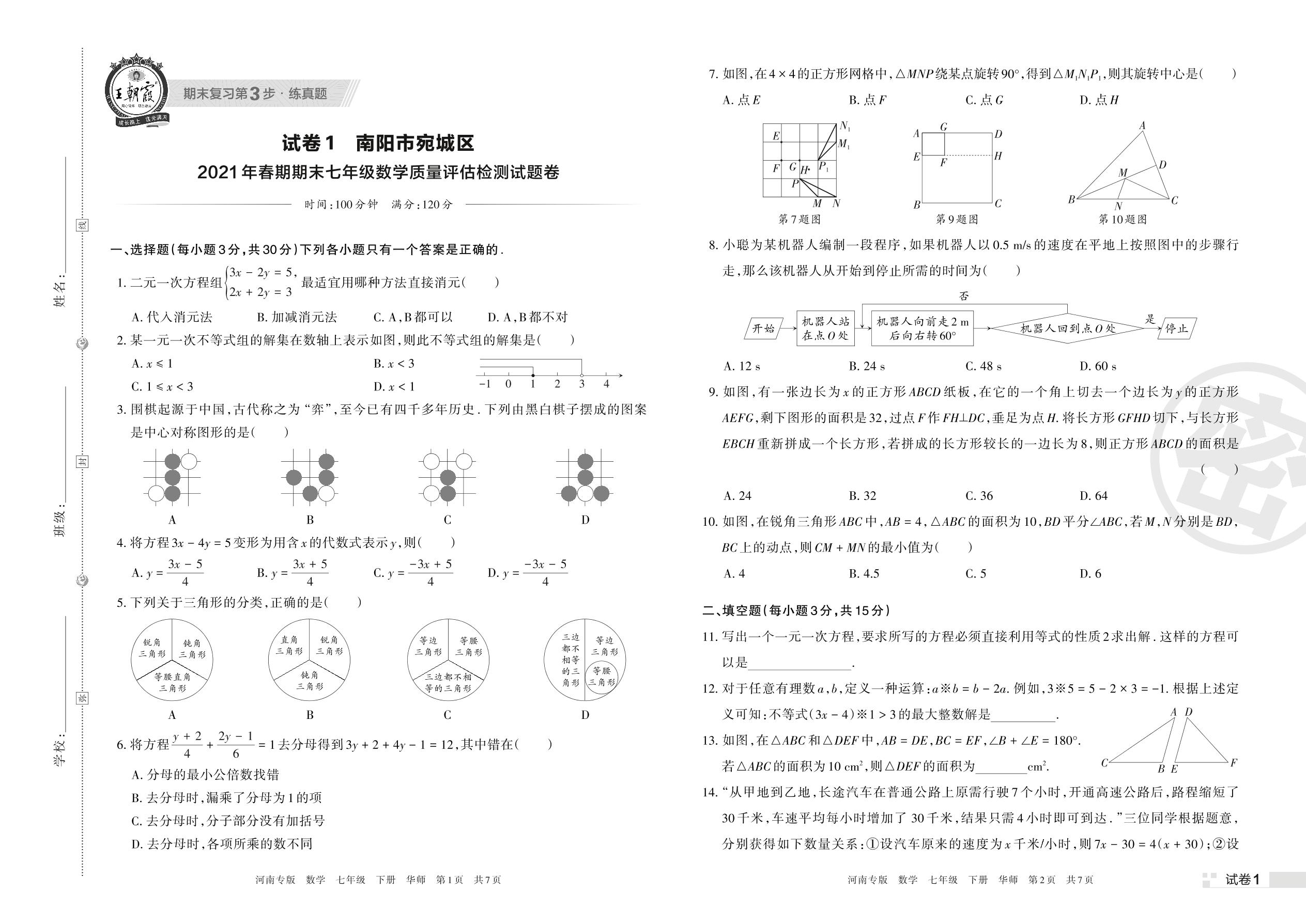南阳市宛城区2021年春期期末七年级数学质量评估检测试题卷(华师版)【1】