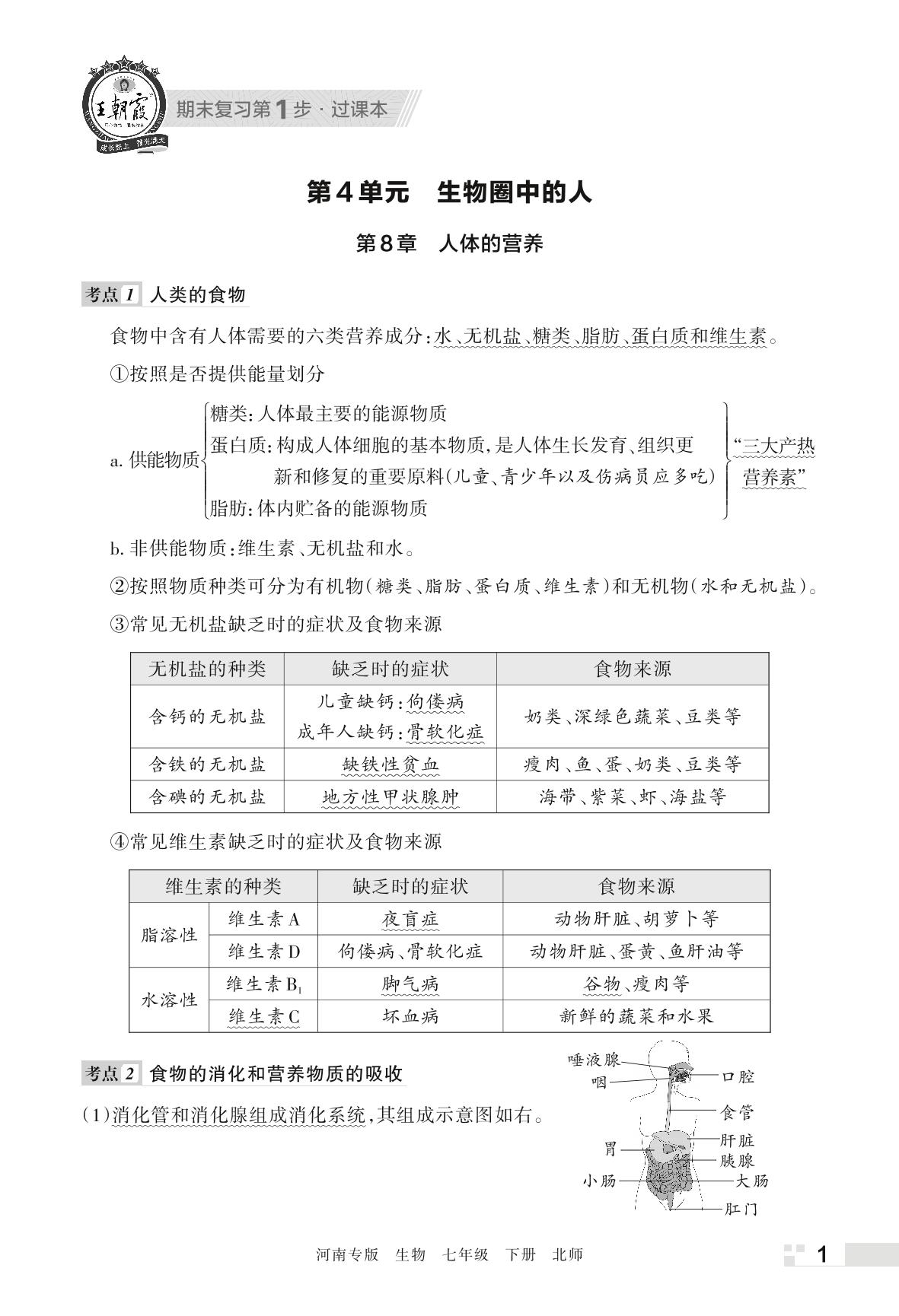 王朝霞期末过课本——基础知识梳理七年级下册生物(北师版)