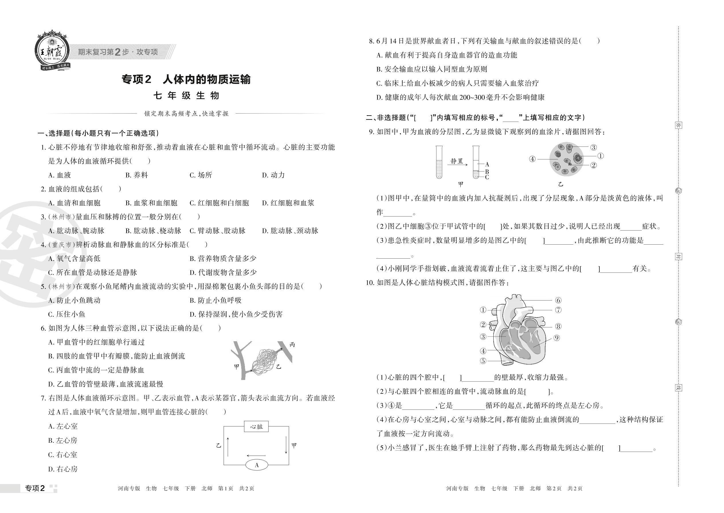 王朝霞期末专项卷——人体内的物质运输七年级下册生物(北师版)【2】