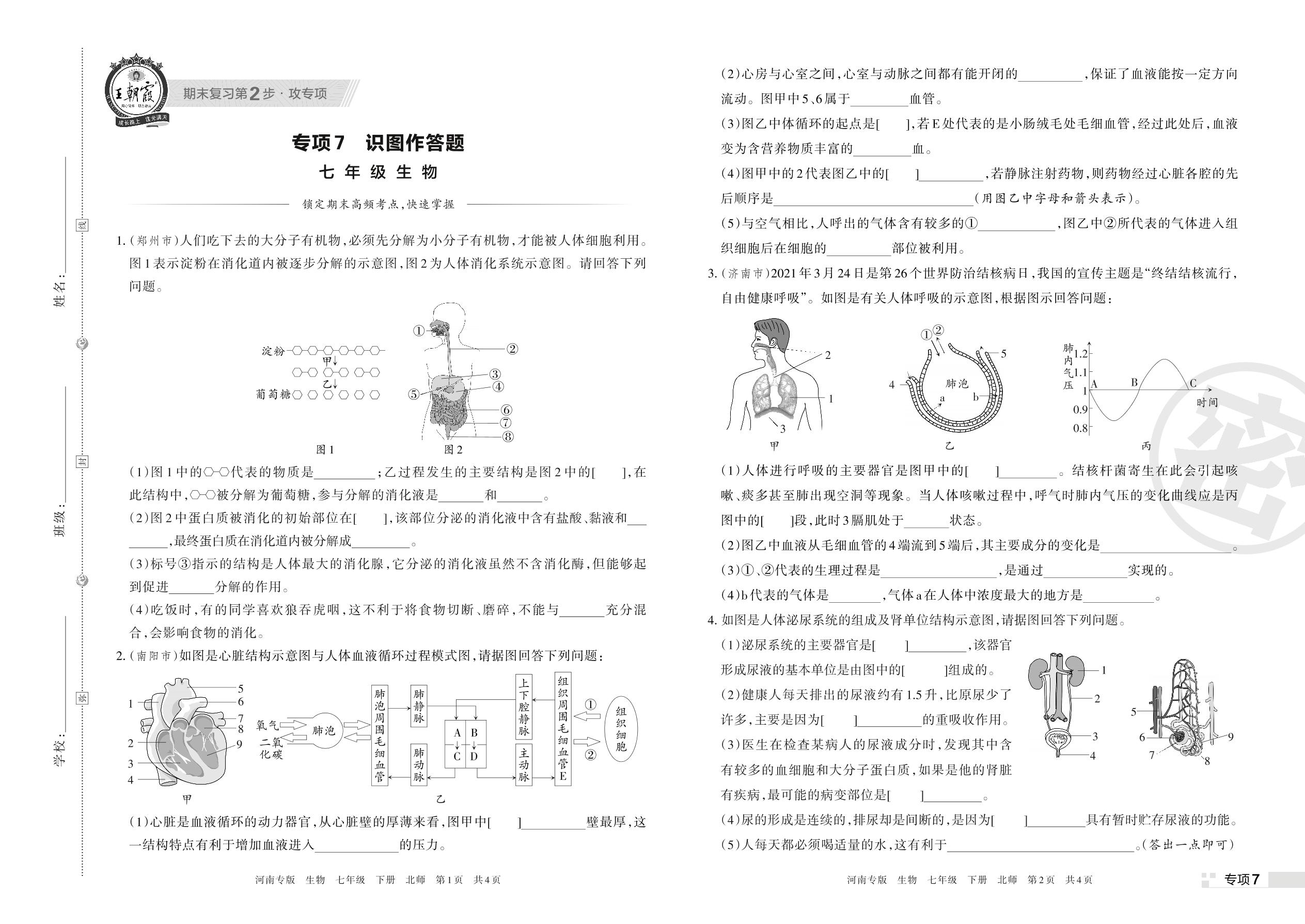 王朝霞期末专项卷——识图作答题七年级下册生物(北师版)【7】