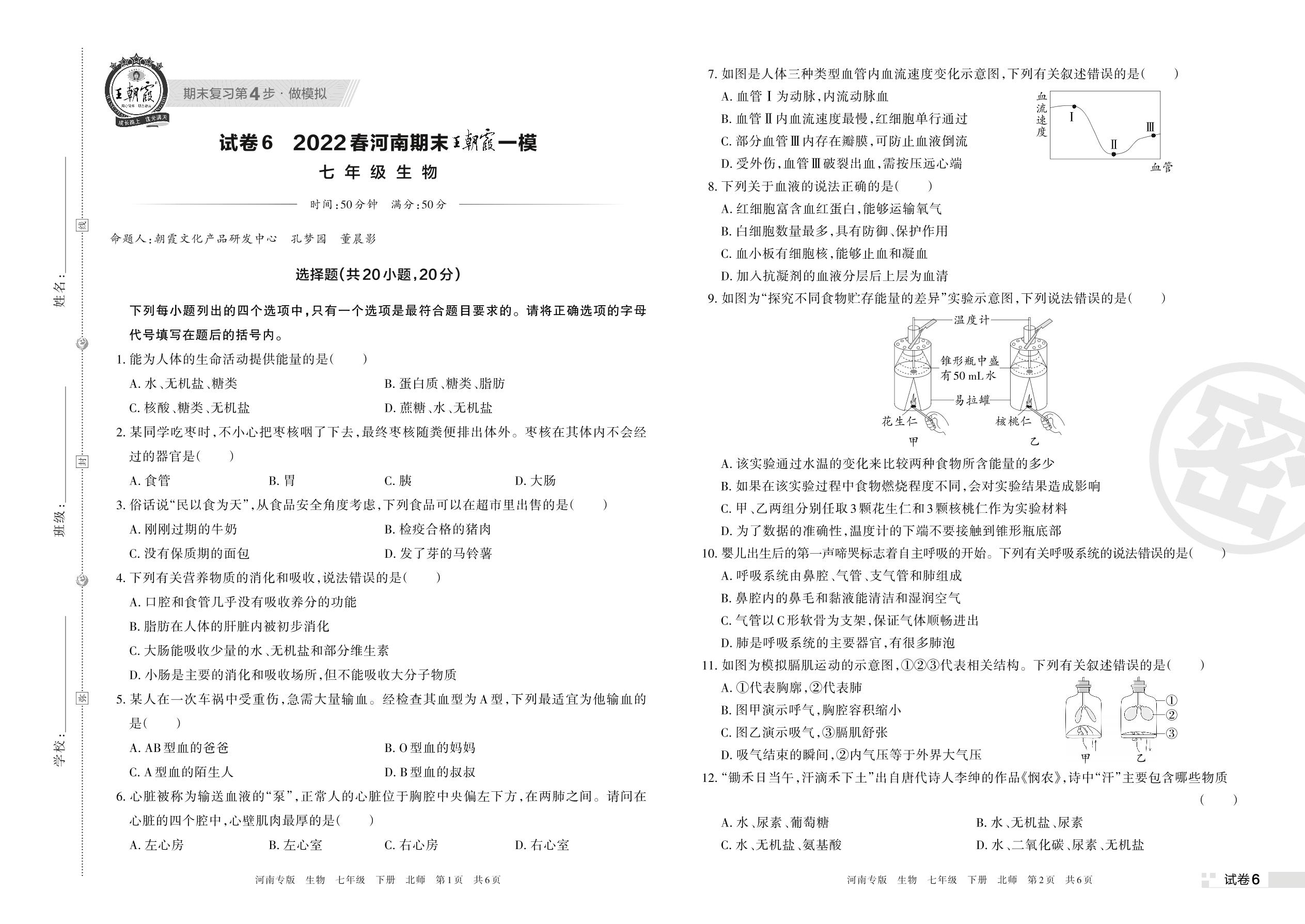 王朝霞期末模拟卷七年级下册生物(北师版)【6】