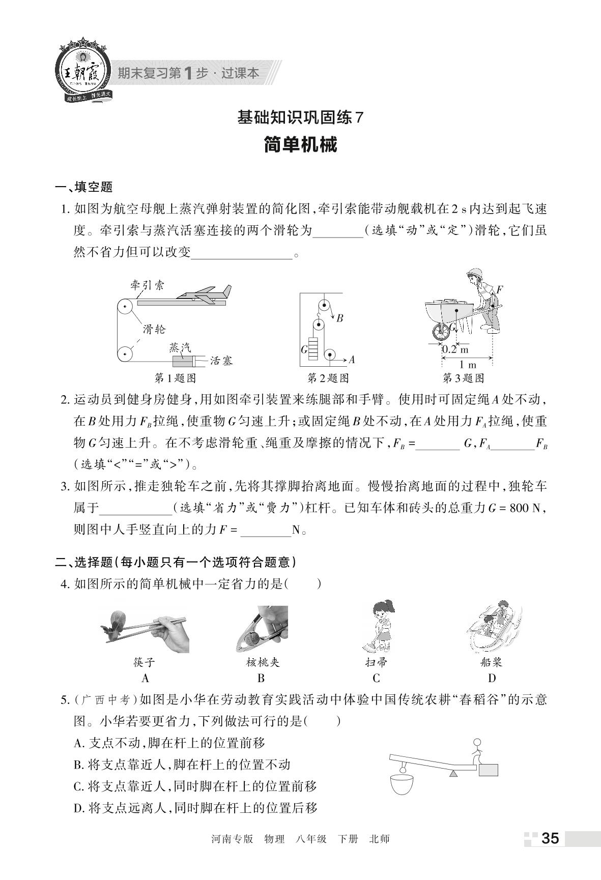 王朝霞期末过课本——基础知识巩固练7 简单机械八年级下册物理(北师版)