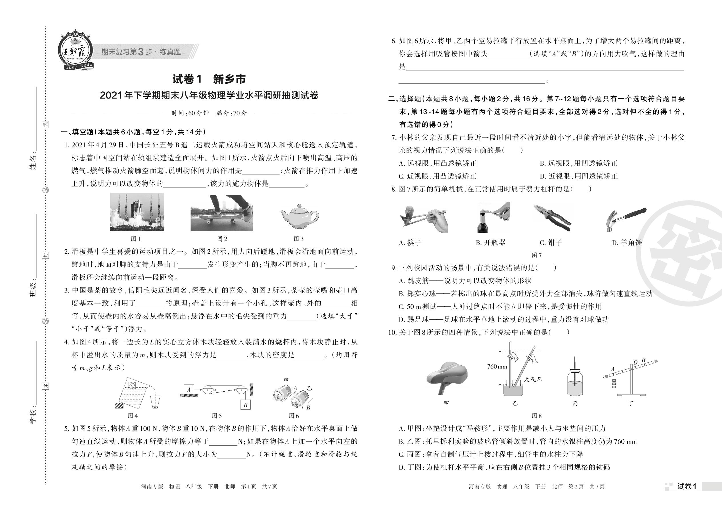 新乡市2021年下学期期末八年级物理学业水平调研抽测试卷(北师版)【1】