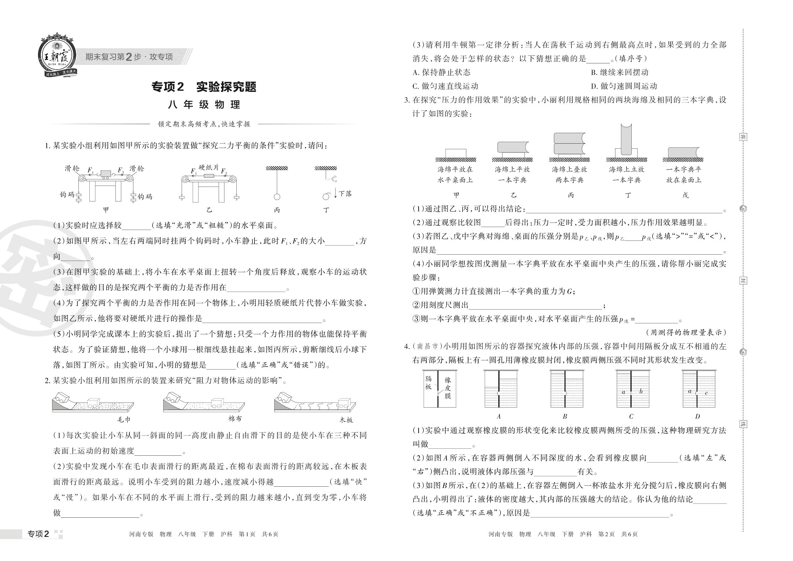 王朝霞期末专项卷——实验探究题八年级下册物理(沪科版)_R220322173754908【2】