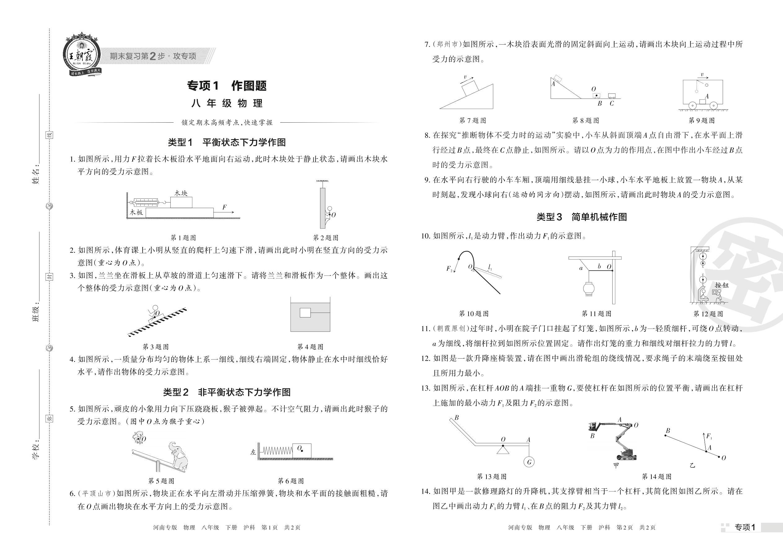 王朝霞期末专项卷——作图题八年级下册物理(沪科版)_R220322173754130【1】