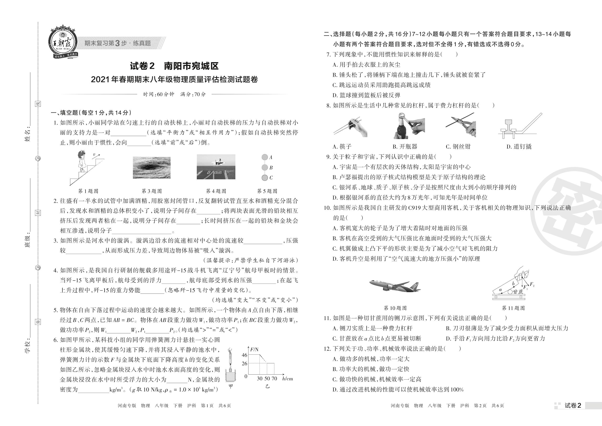 南阳市宛城区2021年春期期末八年级物理质量评估检测试题卷(沪科版)【2】