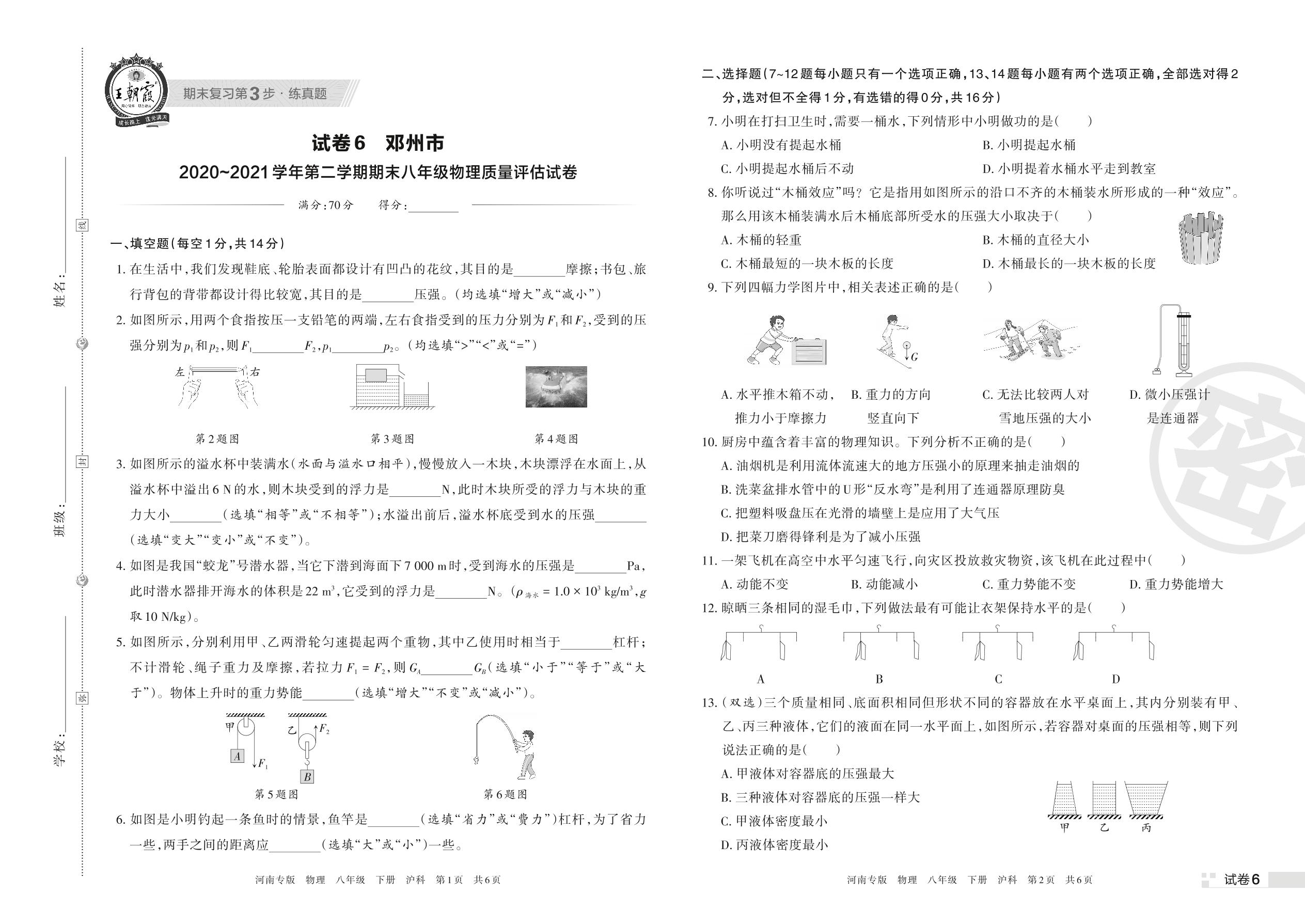 邓州市2020~2021学年第二学期期末八年级物理质量评估试卷(沪科版)【6】