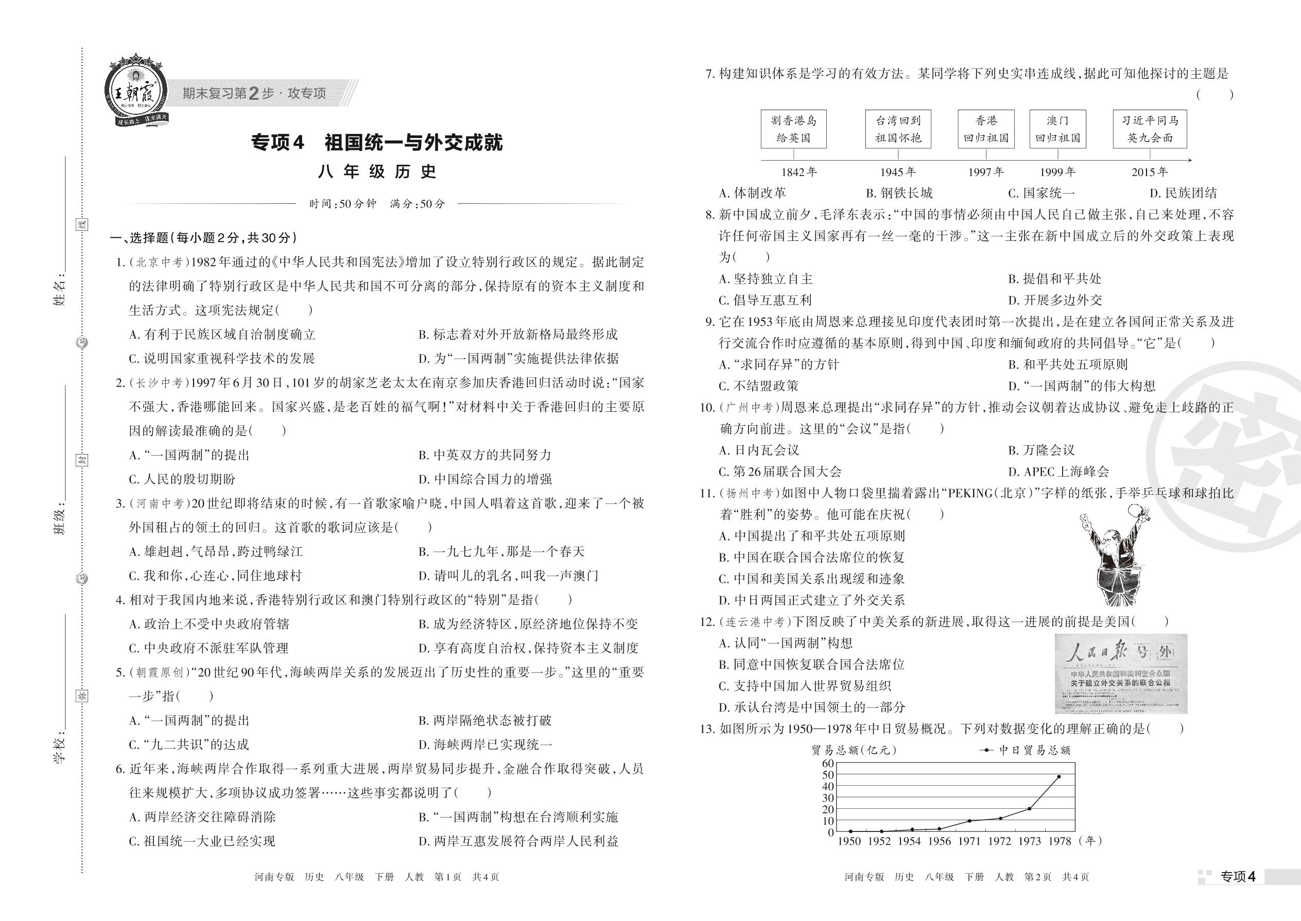 王朝霞期末专项卷——祖国统一与外交成就八年级下册历史(人教版)_R220323134713357【4】
