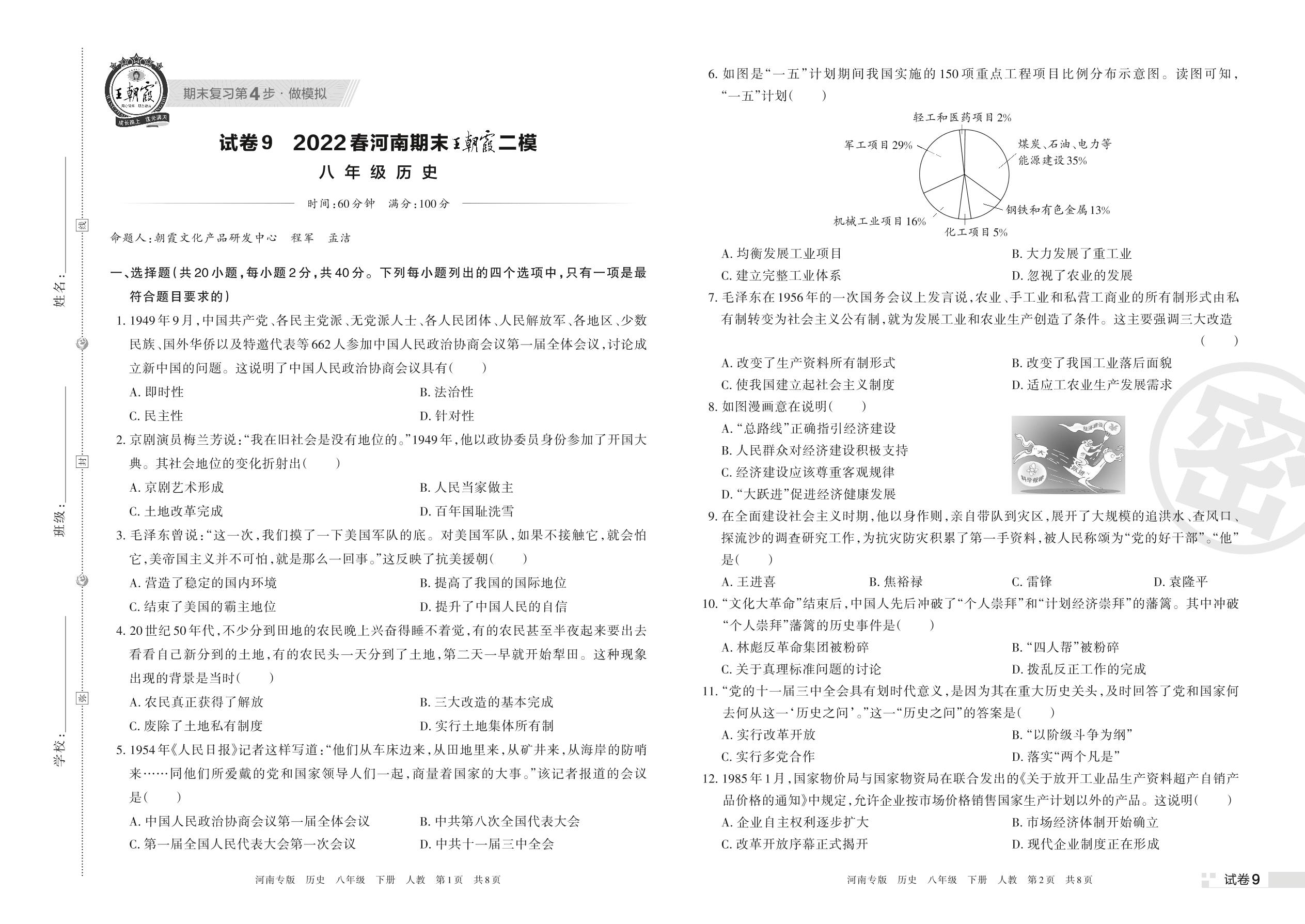 王朝霞期末模拟卷八年级下册历史(人教版)_R220323134714949【9】