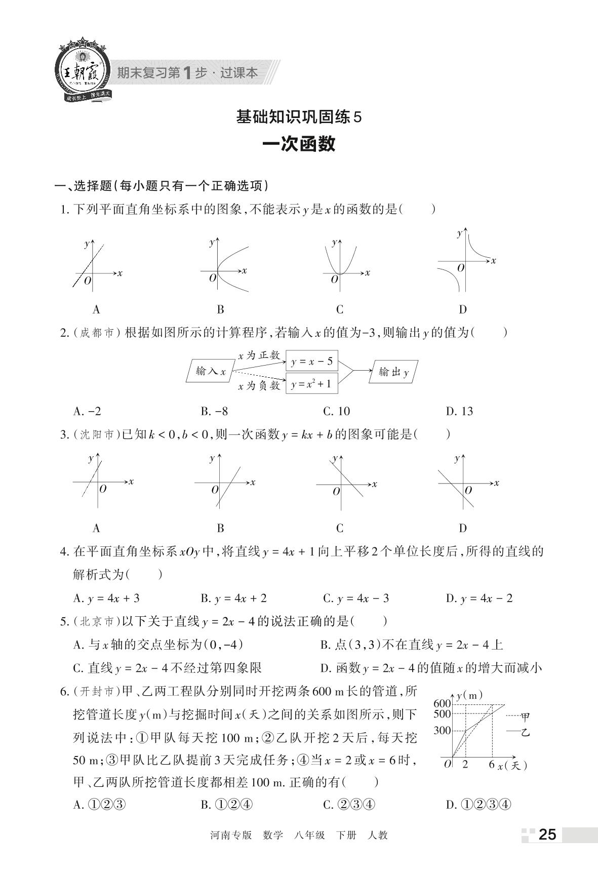 王朝霞期末过课本——基础知识巩固练5 一次函数八年级下册数学(人教版)_R220323135412812
