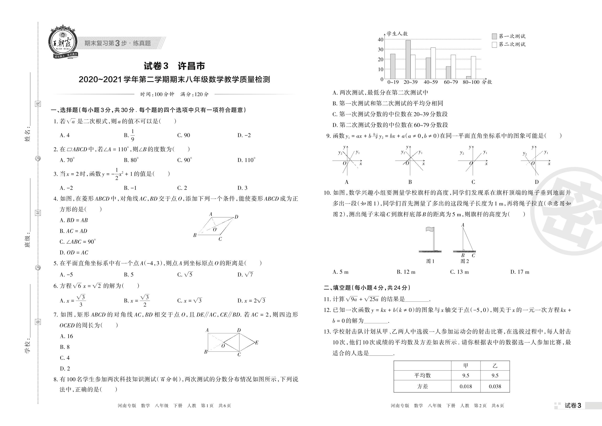 许昌市2020~2021学年第二学期期末八年级数学教学质量检测【3】