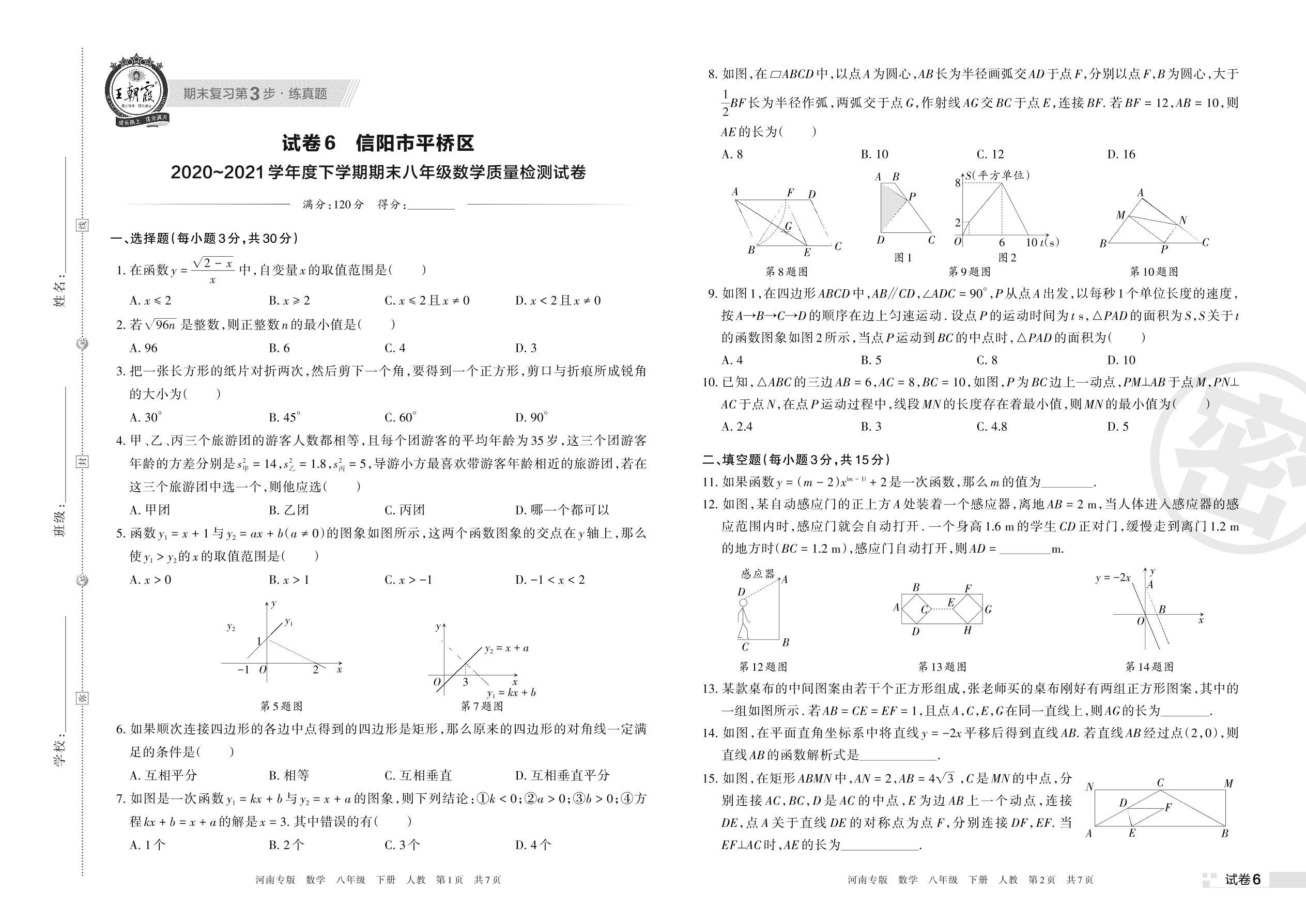 信阳市平桥区2020~2021学年度下学期期末八年级数学质量检测试卷【6】