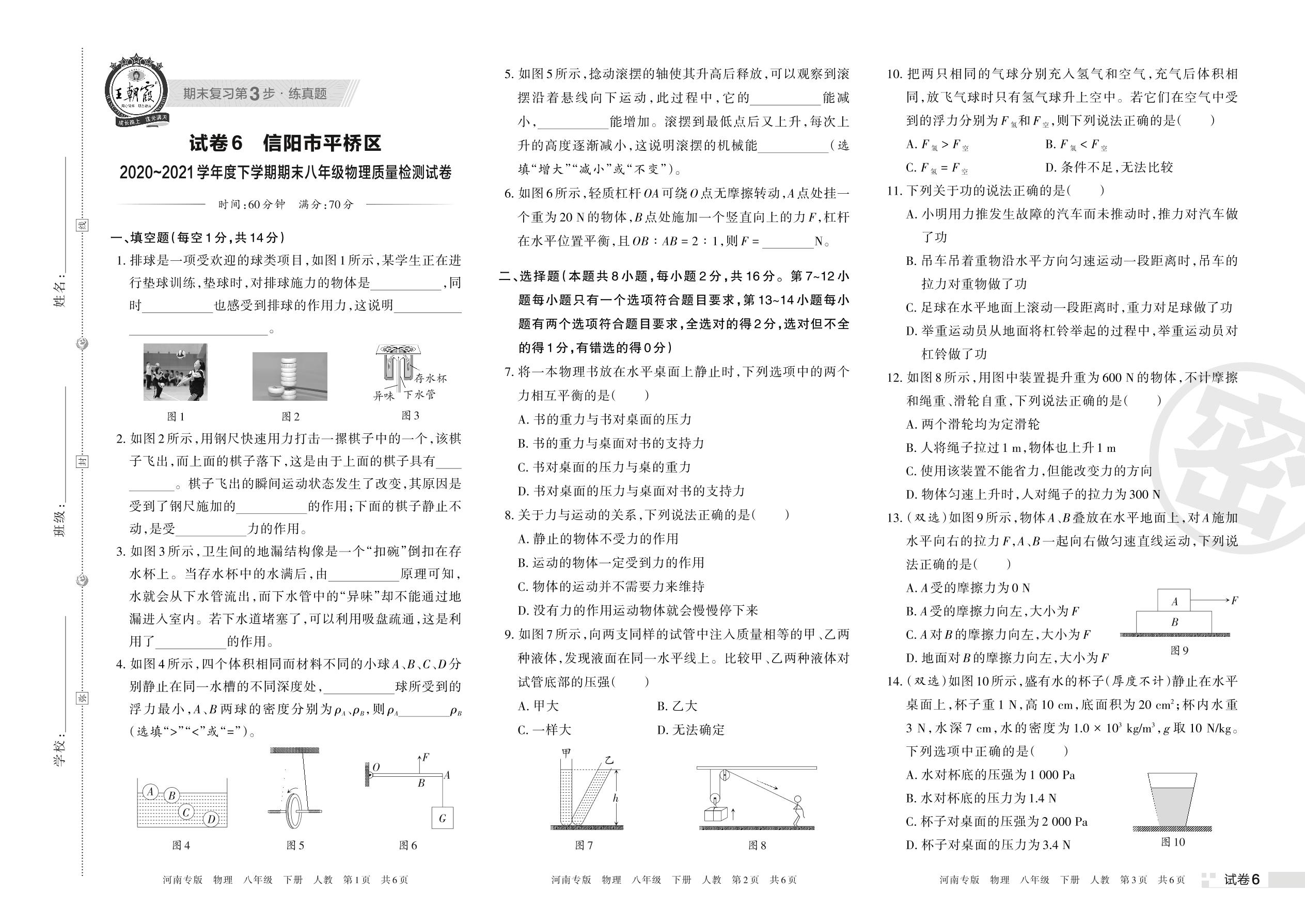 信阳市平桥区2020~2021学年度下学期期末八年级物理质量检测试卷(人教版)【6】