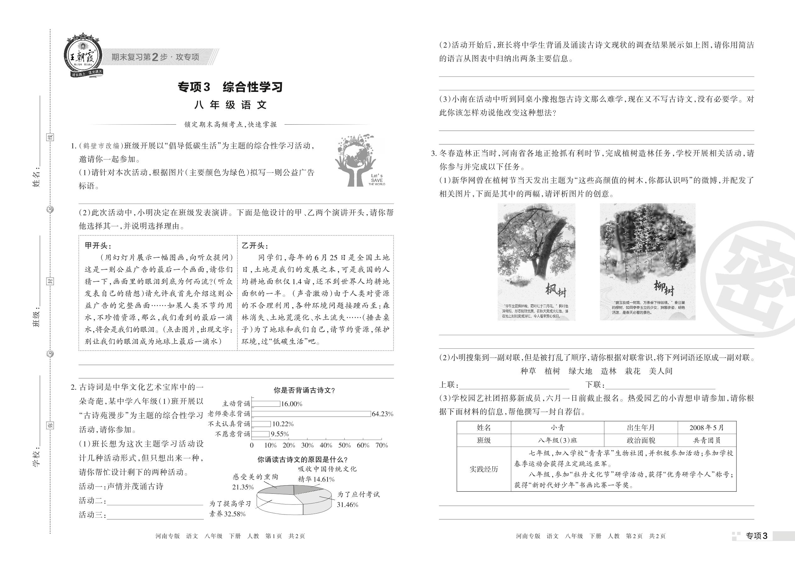 王朝霞期末专项卷——综合性学习八年级下册语文(人教版)_R220323141027064【3】
