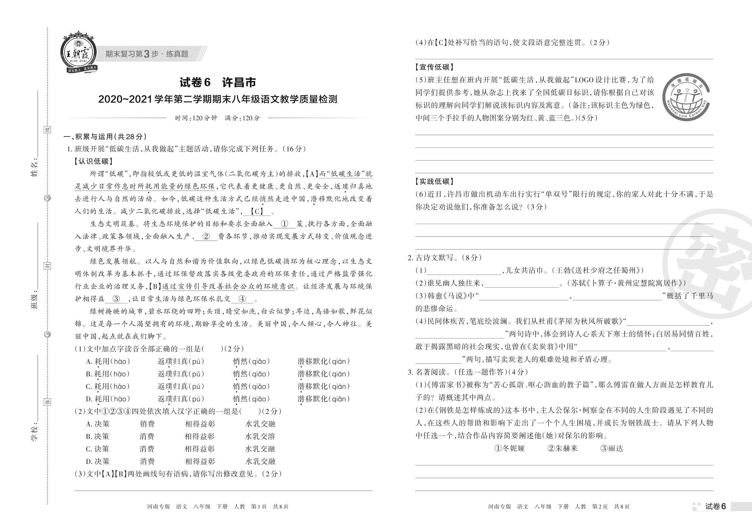 八年级语文人教版下册期末卷