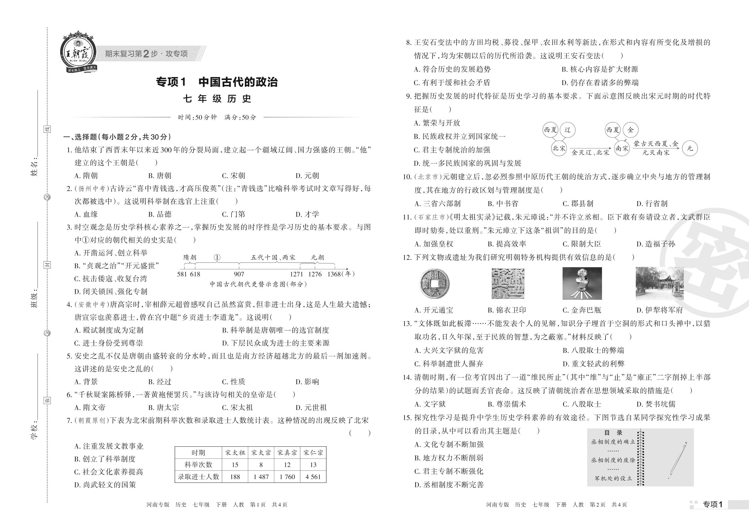 王朝霞期末专项卷——中国古代的政治七年级下册历史(人教版)_R220323145143335【1】