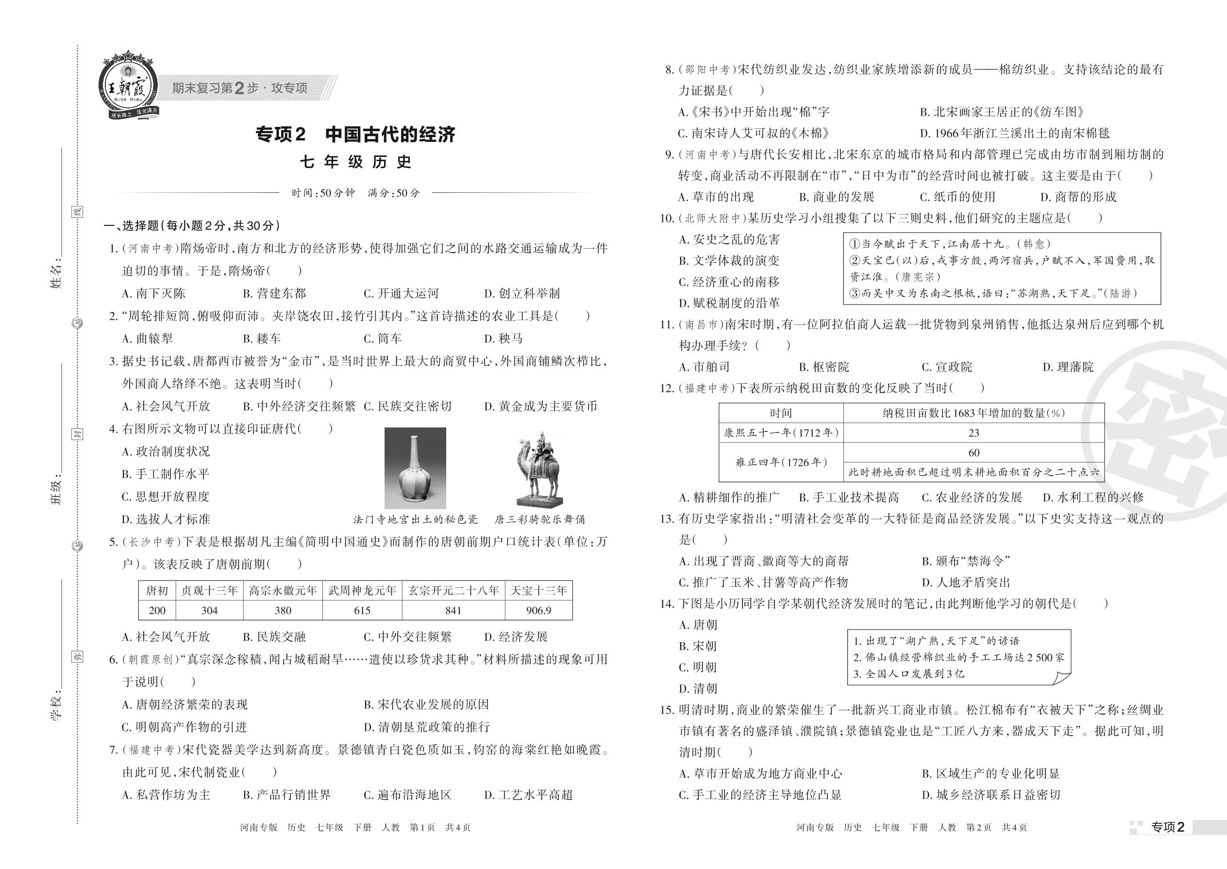 王朝霞期末专项卷——中国古代的经济七年级下册历史(人教版)_R220323145143230【2】