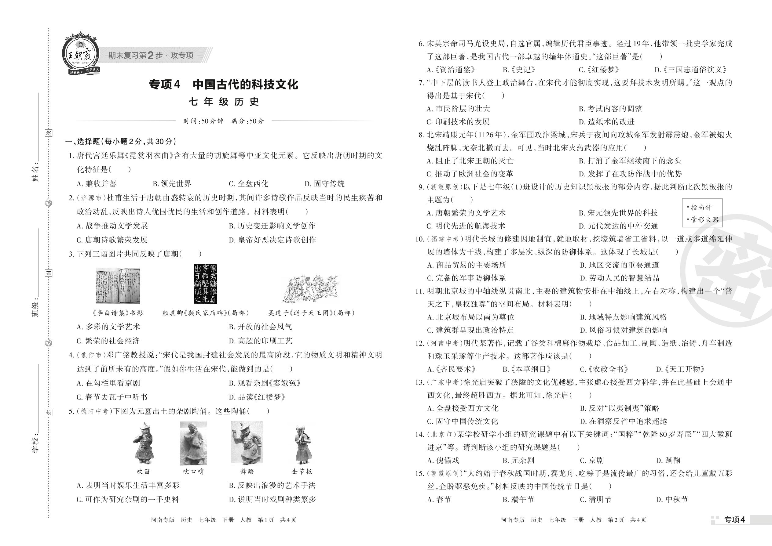 王朝霞期末专项卷——中国古代的科技文化七年级下册历史(人教版)_R220323145143979【4】