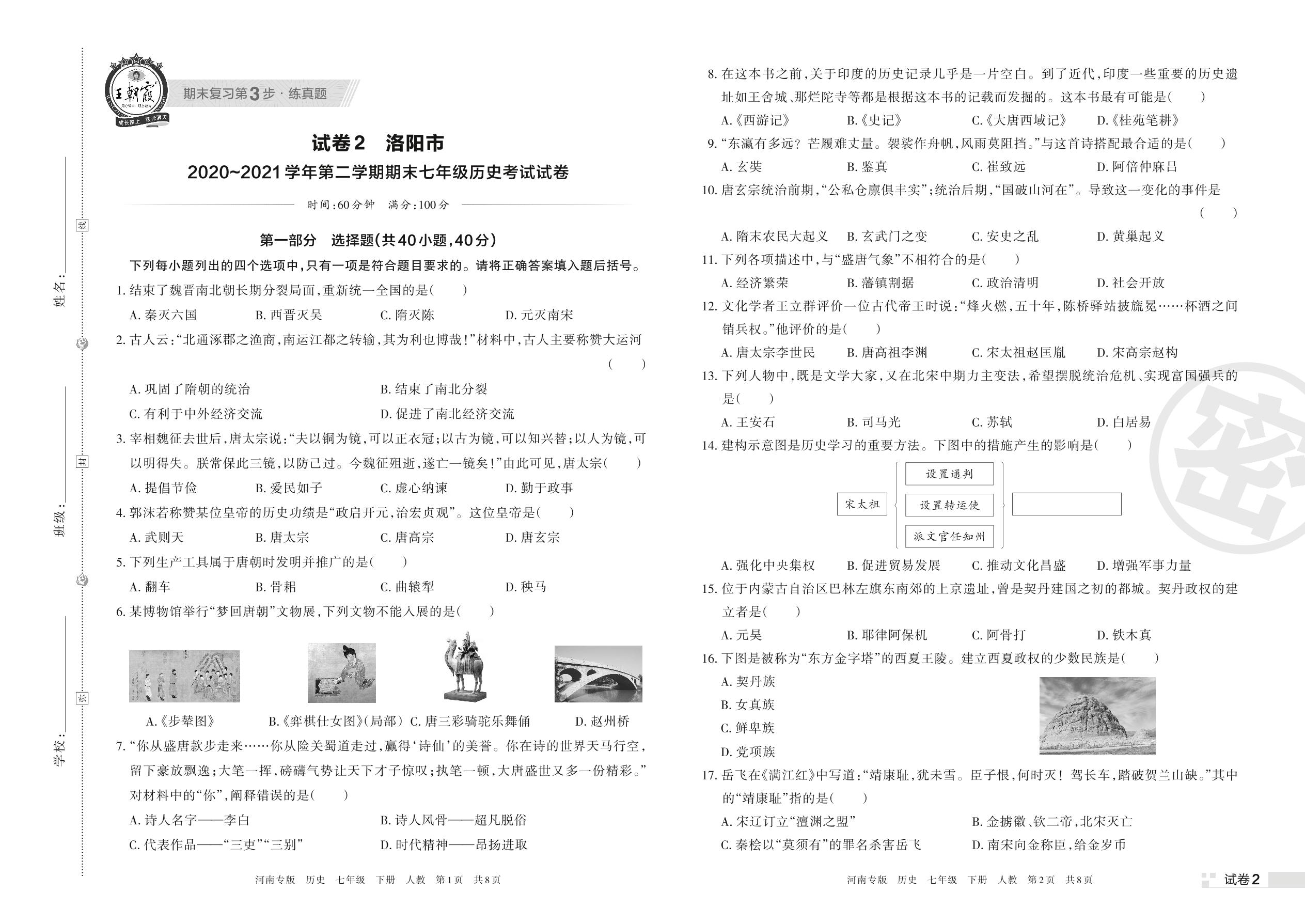 洛阳市2020~2021学年第二学期期末七年级历史考试试卷(人教版)【2】