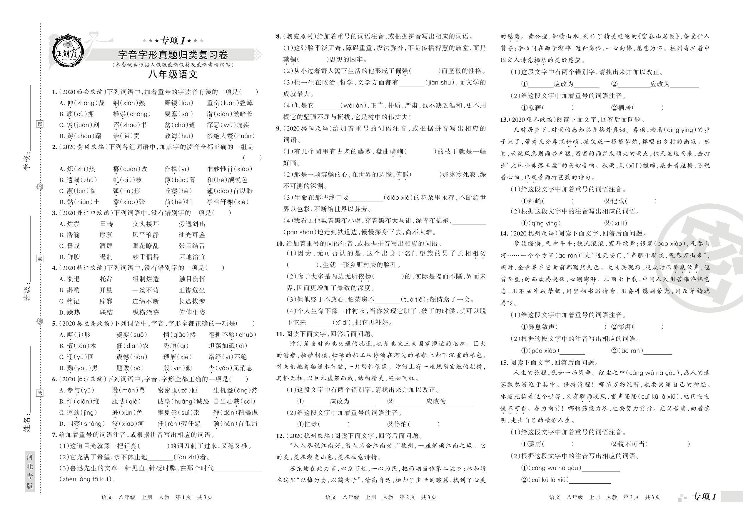 八年级语文人教版上册专项卷