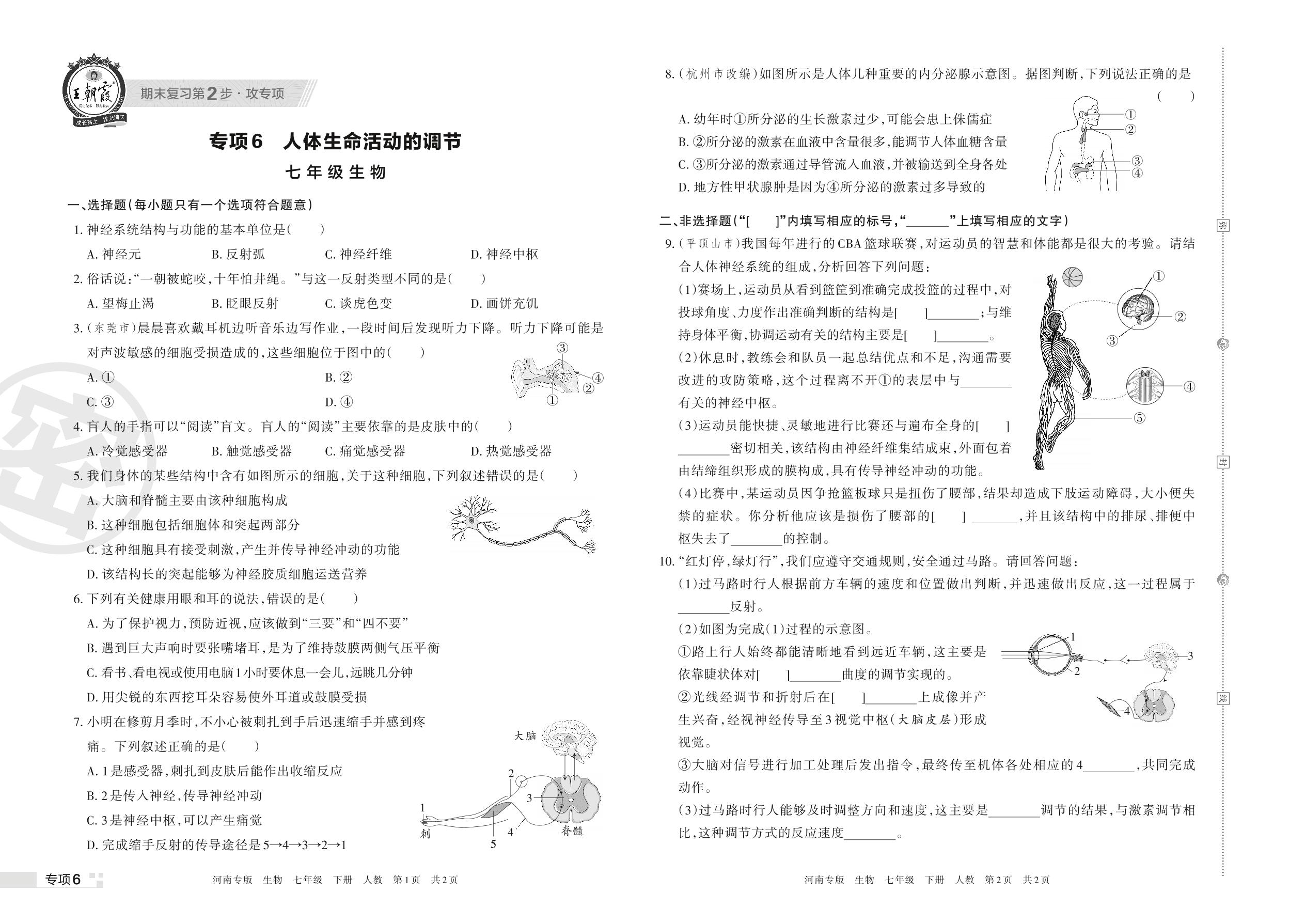 王朝霞期末专项卷——人体生命活动的调节七年级下册生物(人教版)【6】