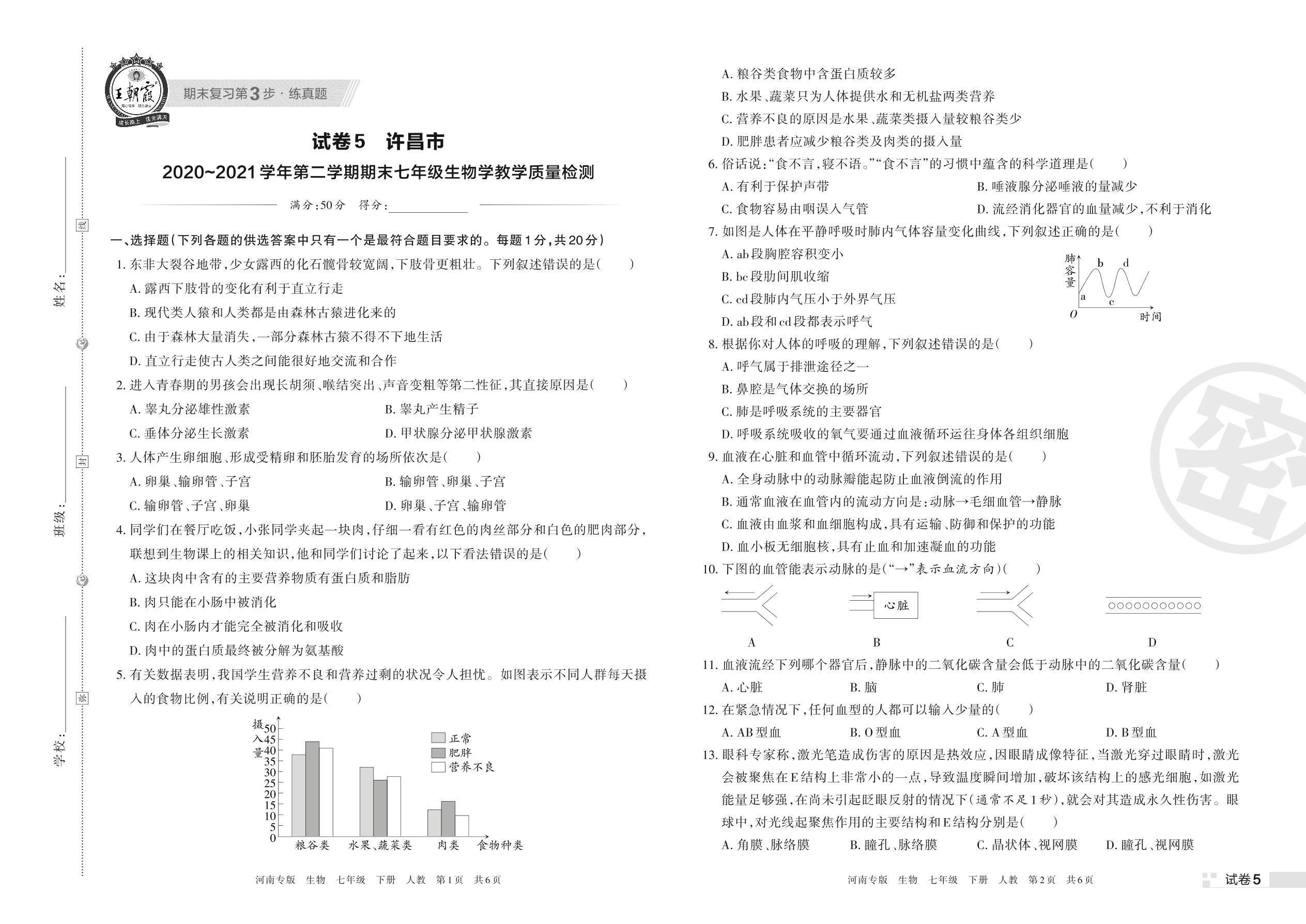 许昌市2020~2021学年第二学期期末七年级生物学教学质量检测(人教版)【5】