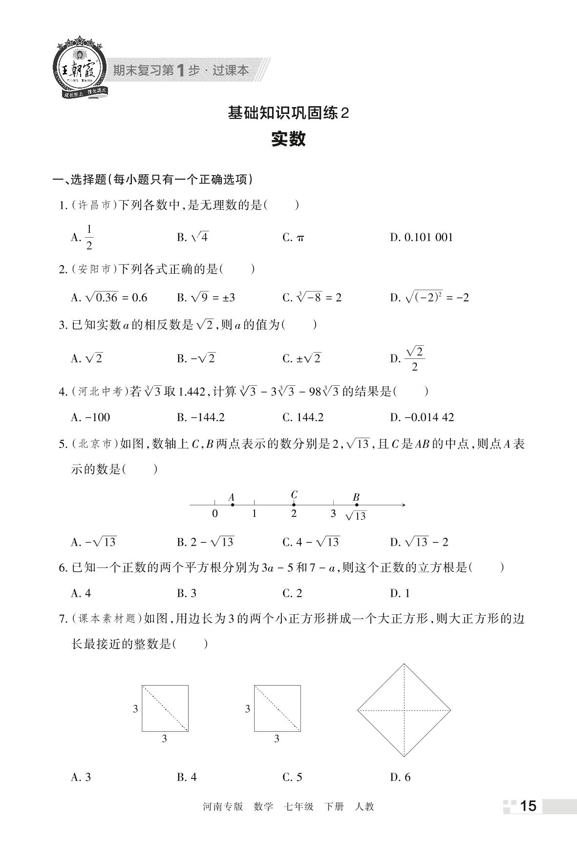 王朝霞期末过课本——基础知识巩固练2 实数七年级下册数学(人教版)_R220323150420636