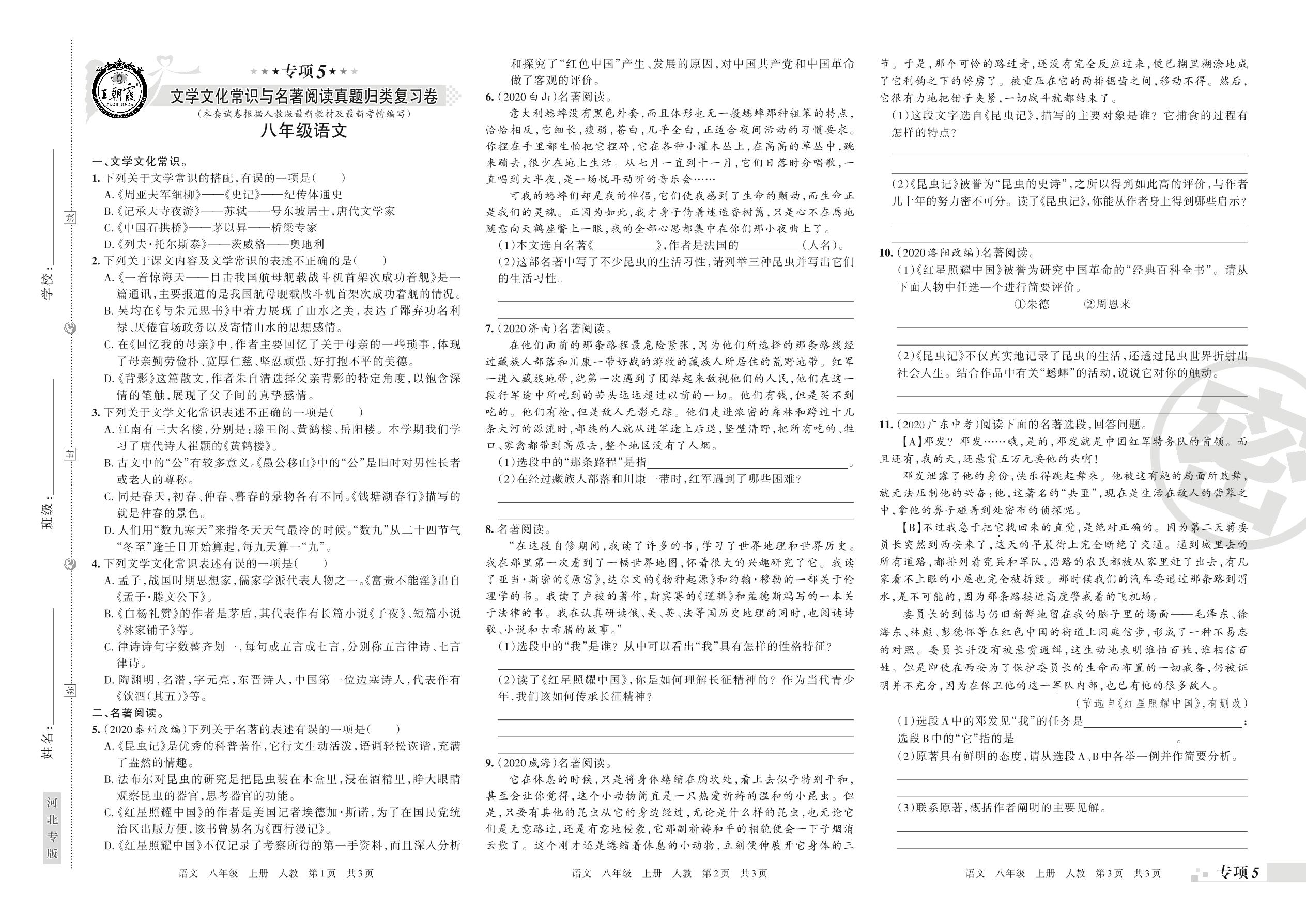 王朝霞期末专项卷——文学文化常识与名著阅读、口语交际与综合性学习真题归类复习八年级上册语文(人教版)【0】
