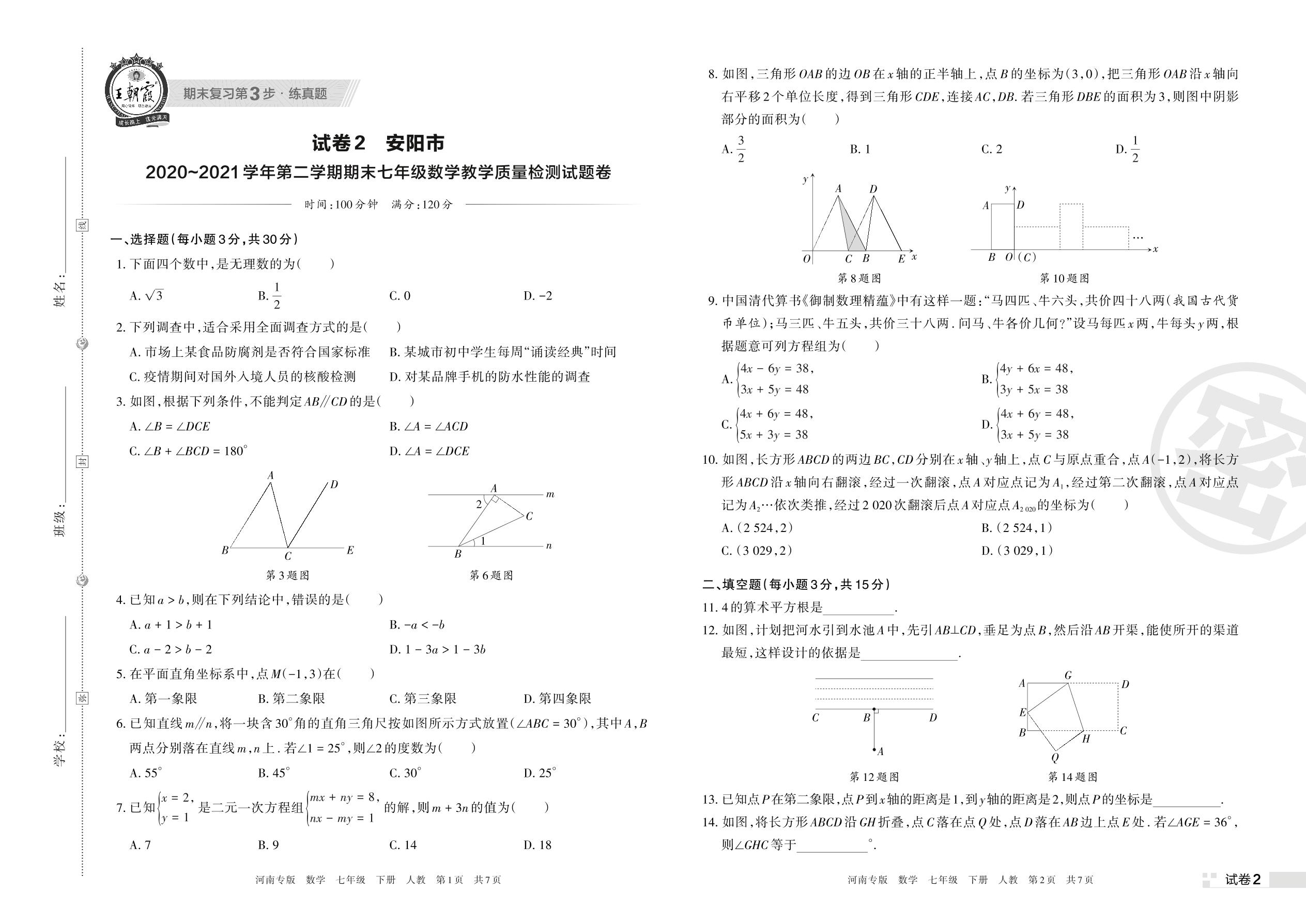 安阳市2020~2021学年第二学期期末七年级数学教学质量检测试题卷(人教版)【2】