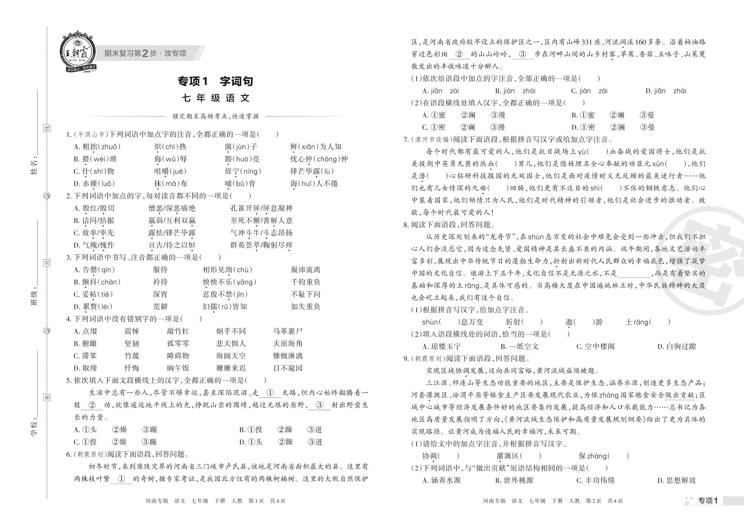 王朝霞期末专项卷——字词句七年级下册语文(人教版)【1】