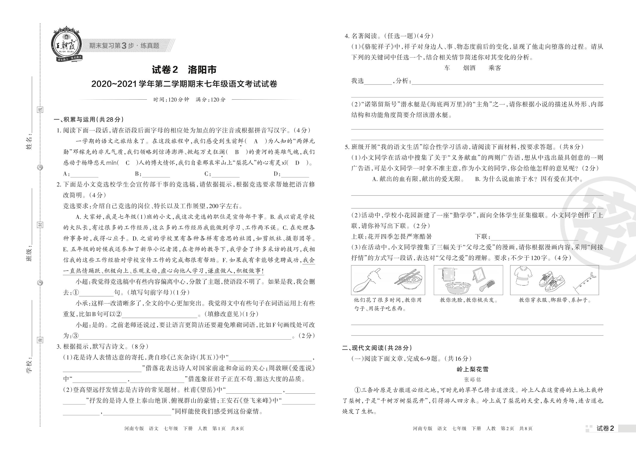 洛阳市2020~2021学年第二学期期末七年级语文考试试卷(人教版)【2】