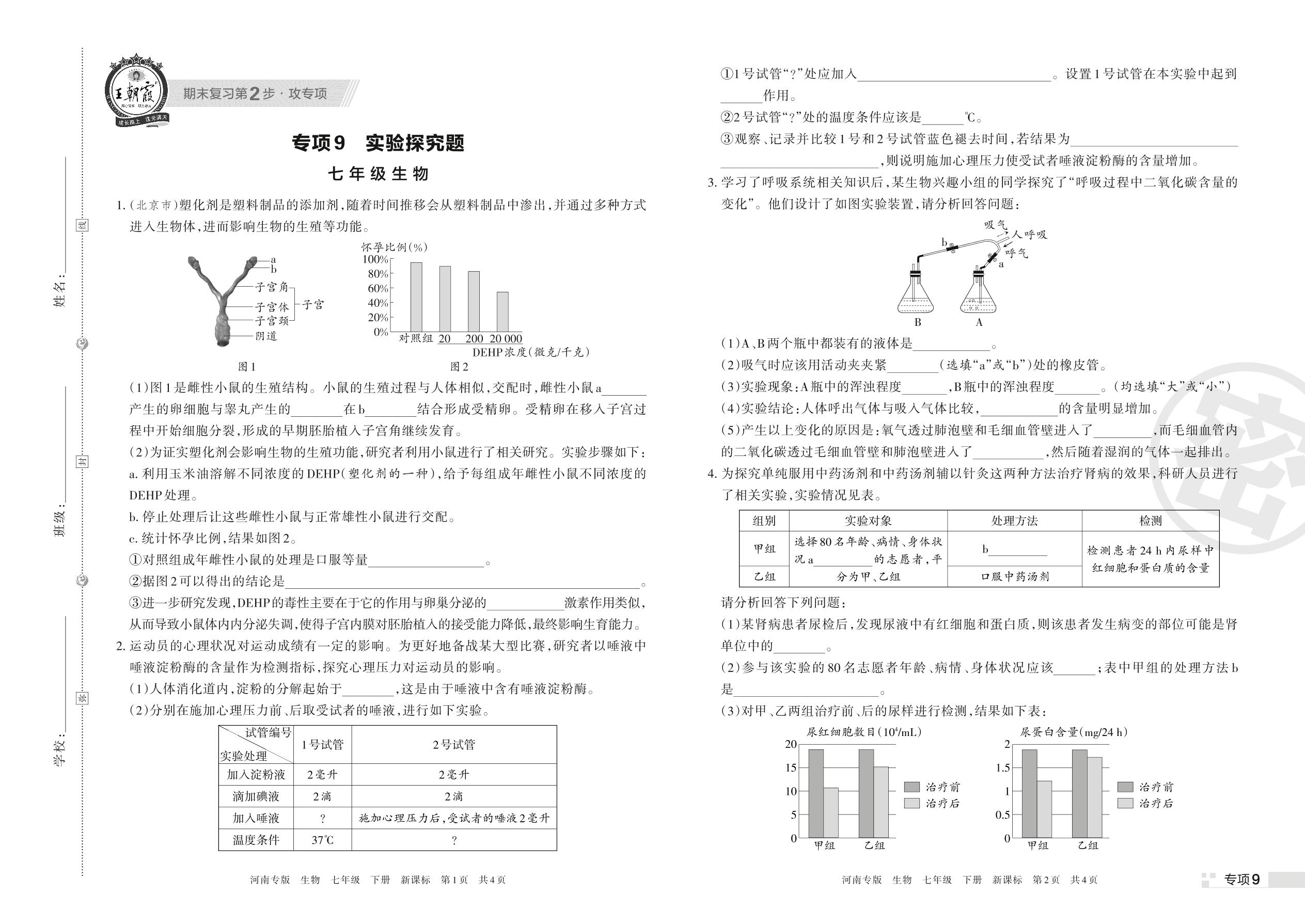 王朝霞期末专项卷——实验探究题七年级下册生物(新课标版)【9】