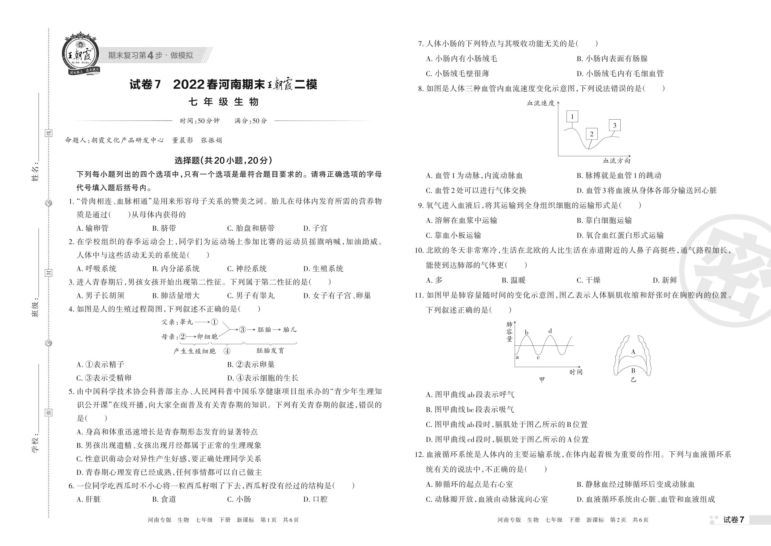 王朝霞期末模拟卷七年级下册生物(新课标版)【7】