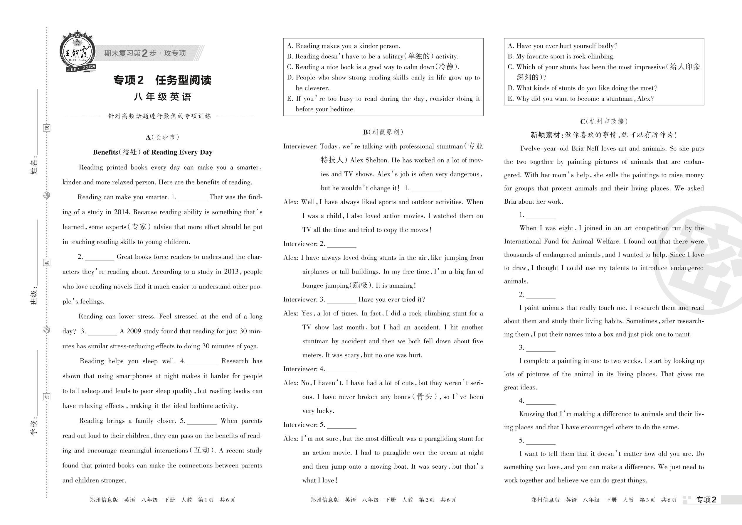 王朝霞期末专项卷——任务型阅读八年级下册英语(人教版)【2】