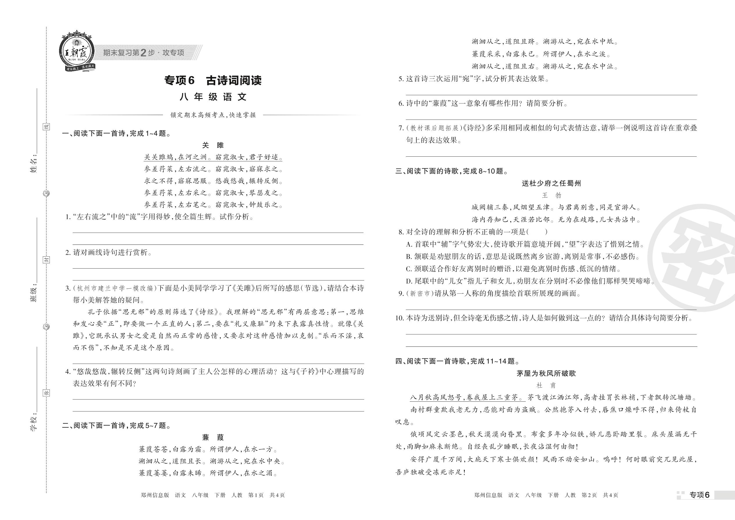 王朝霞期末专项卷——古诗词阅读八年级下册语文(人教版)_R220323155435708【6】