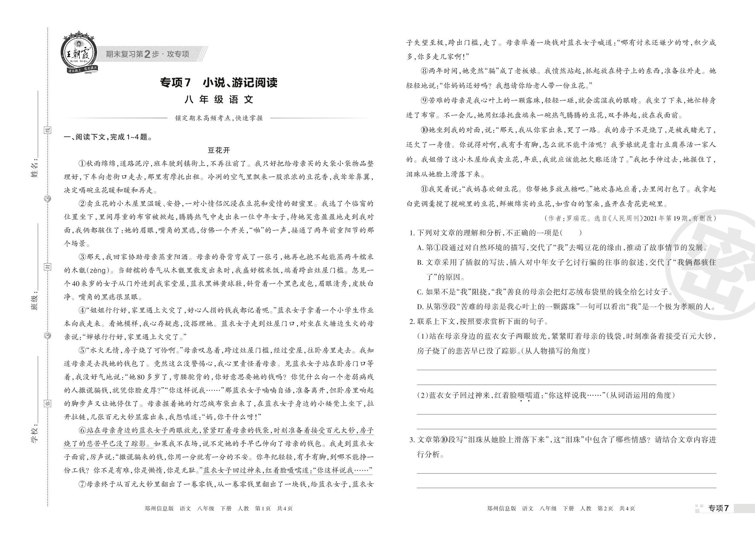 王朝霞期末专项卷——小说、游记阅读八年级下册语文(人教版)【7】