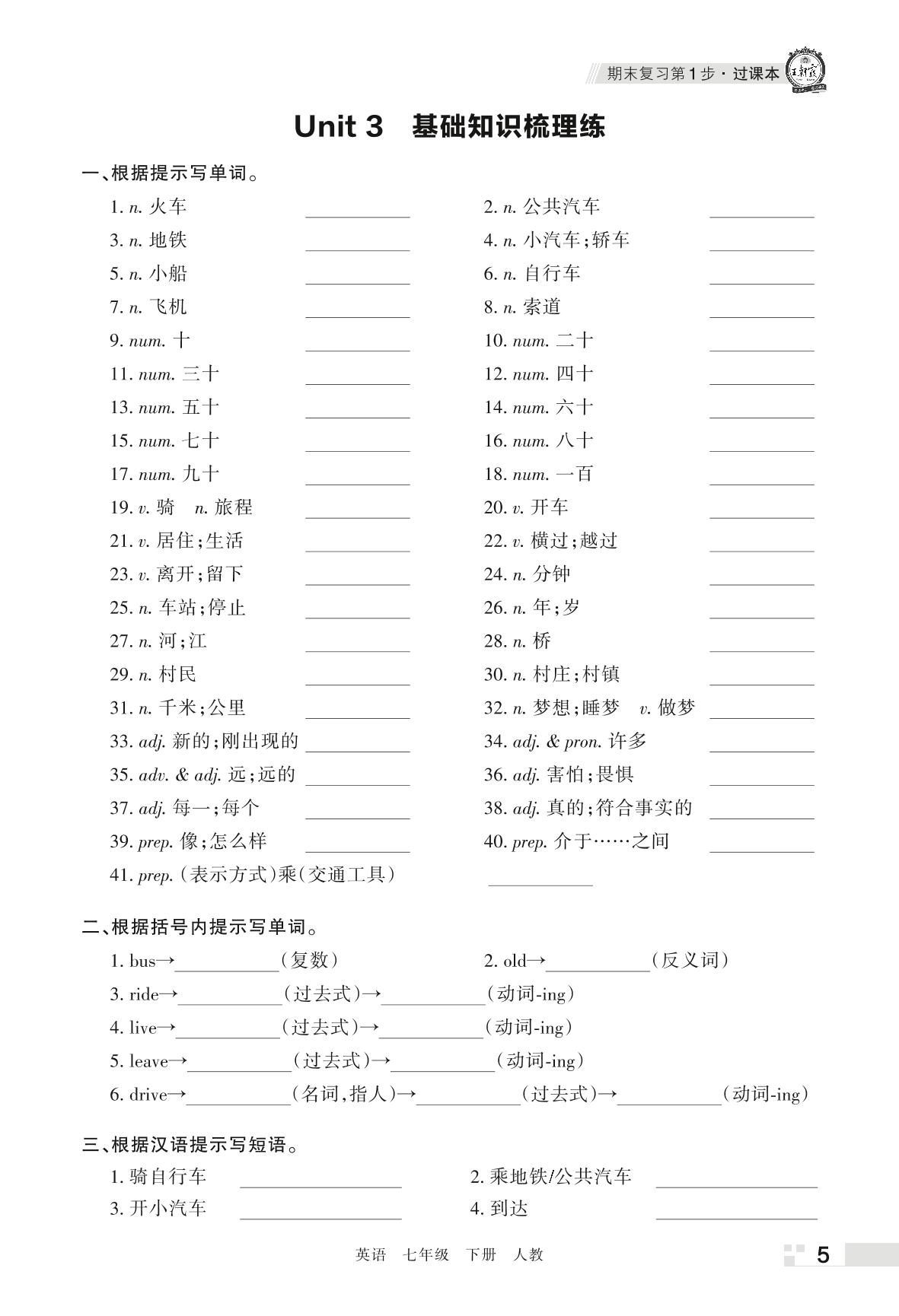 王朝霞期末过课本——Unit 3 基础知识梳理练七年级下册英语(人教版)_R220323160839741
