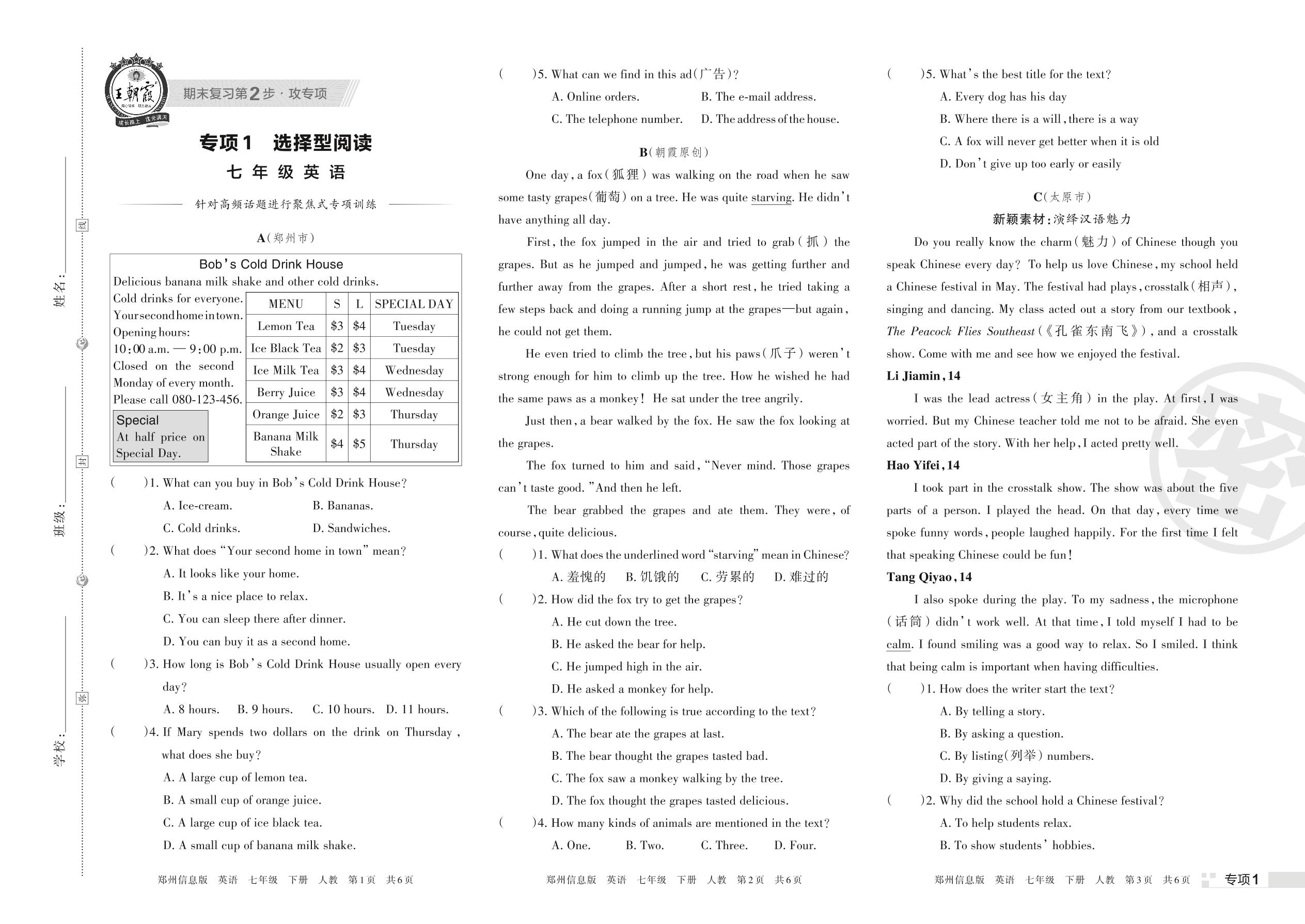 王朝霞期末专项卷——选择型阅读七年级下册英语(人教版)【1】
