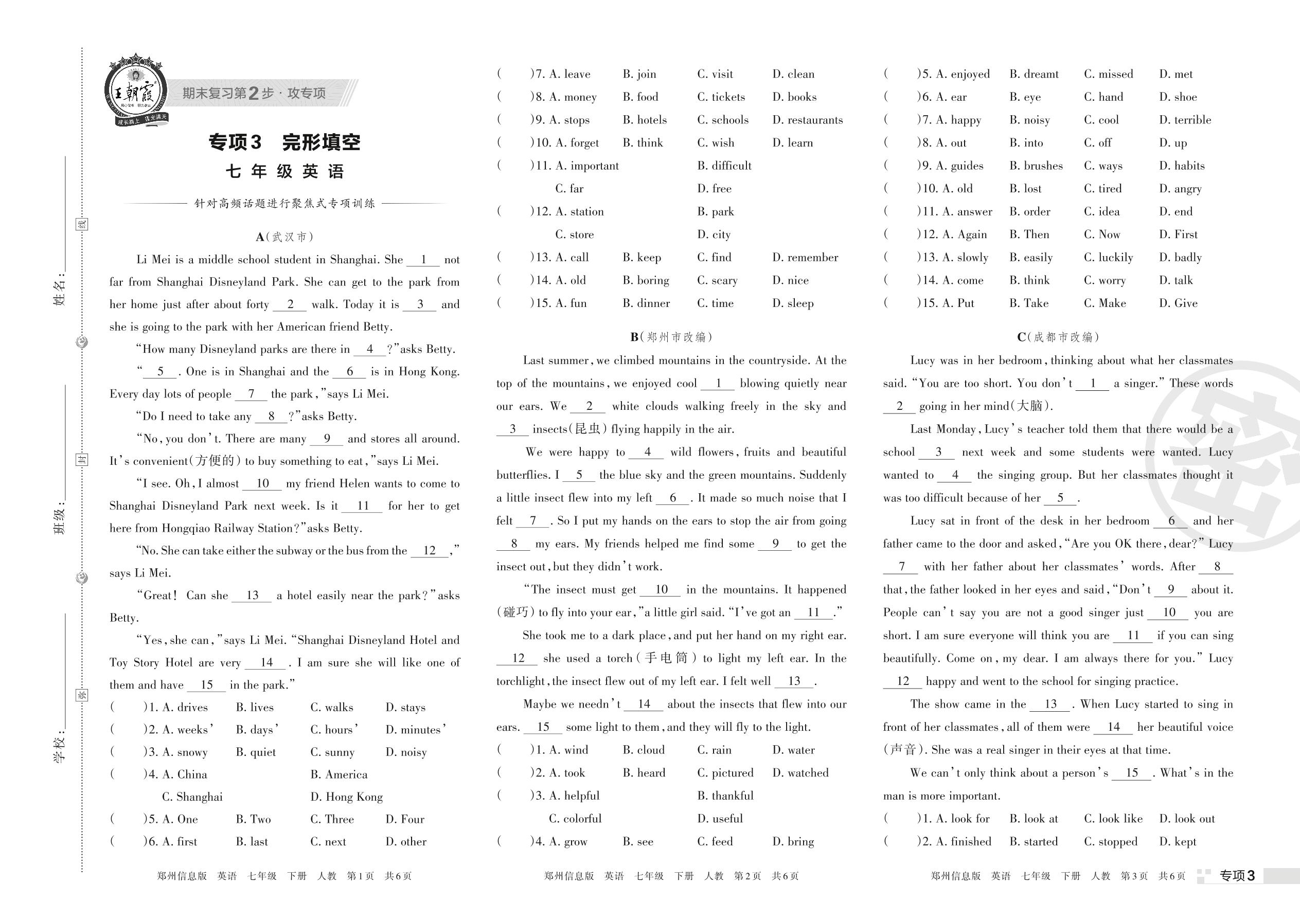 王朝霞期末专项卷——完形填空七年级下册英语(人教版)【3】