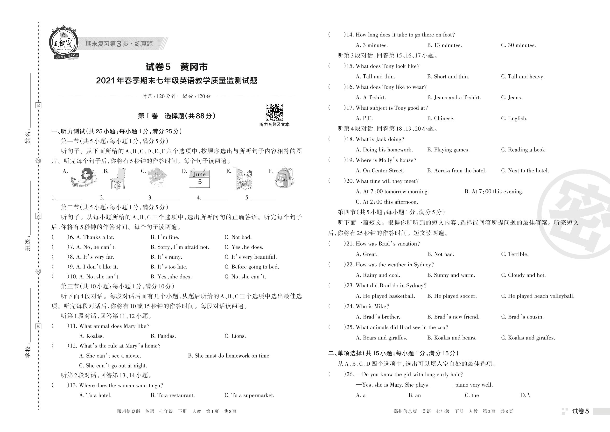 黄冈市2021年春季期末七年级英语教学质量监测试题(人教版)【5】