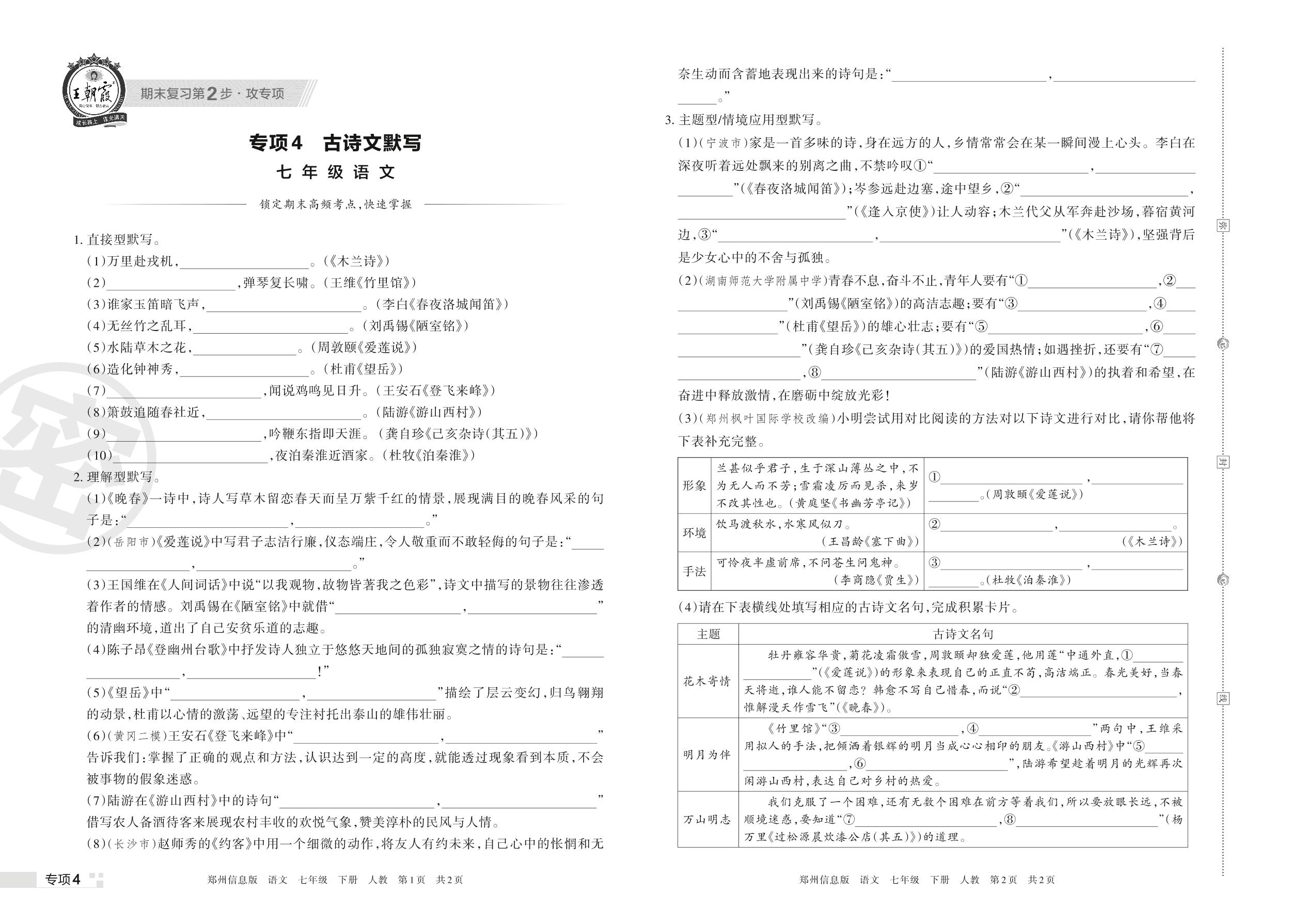 王朝霞期末专项卷——古诗文默写七年级下册语文(人教版)_R220323162543085【4】