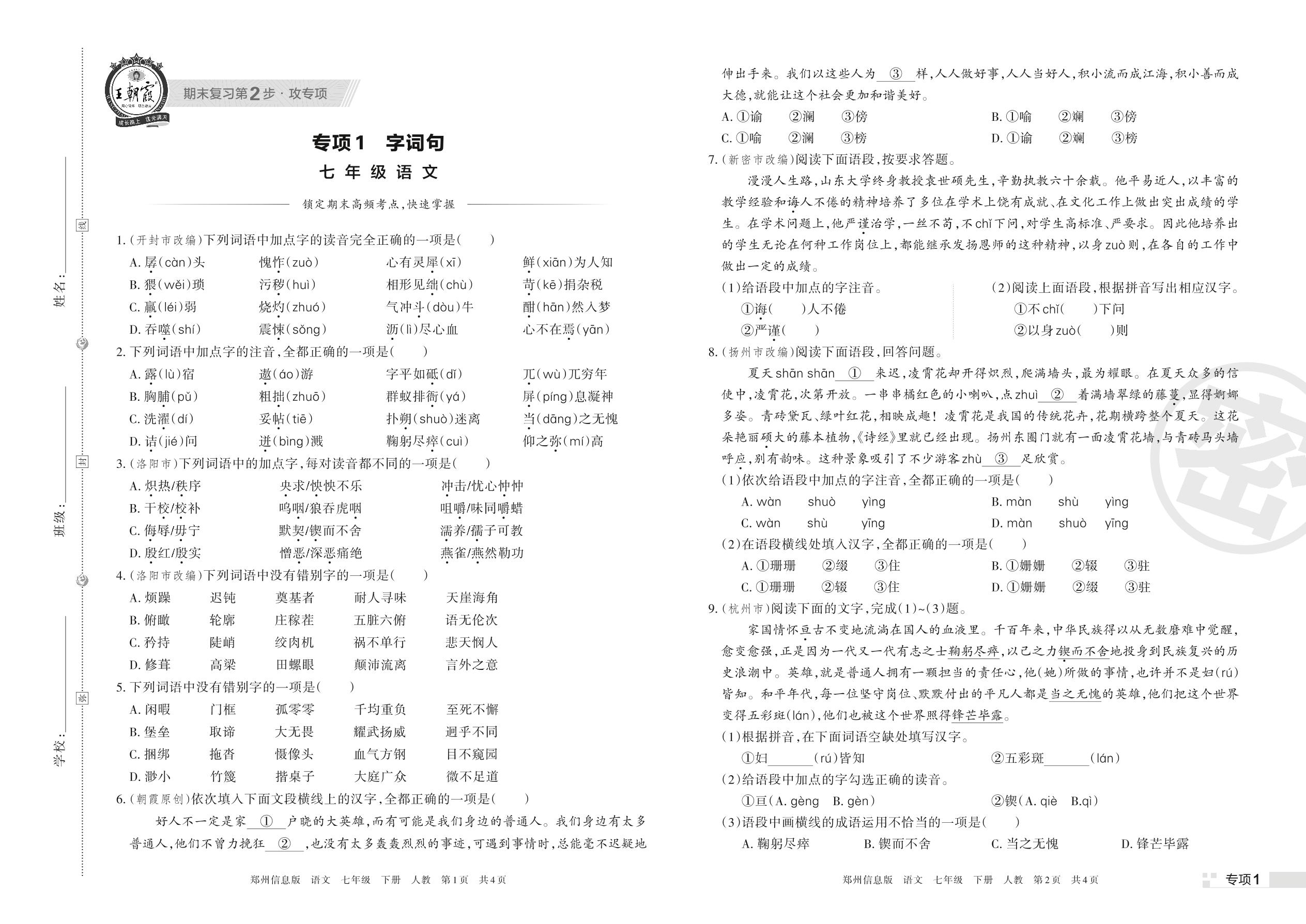 王朝霞期末专项卷——字词句七年级下册语文(人教版)_R220323162543350【1】