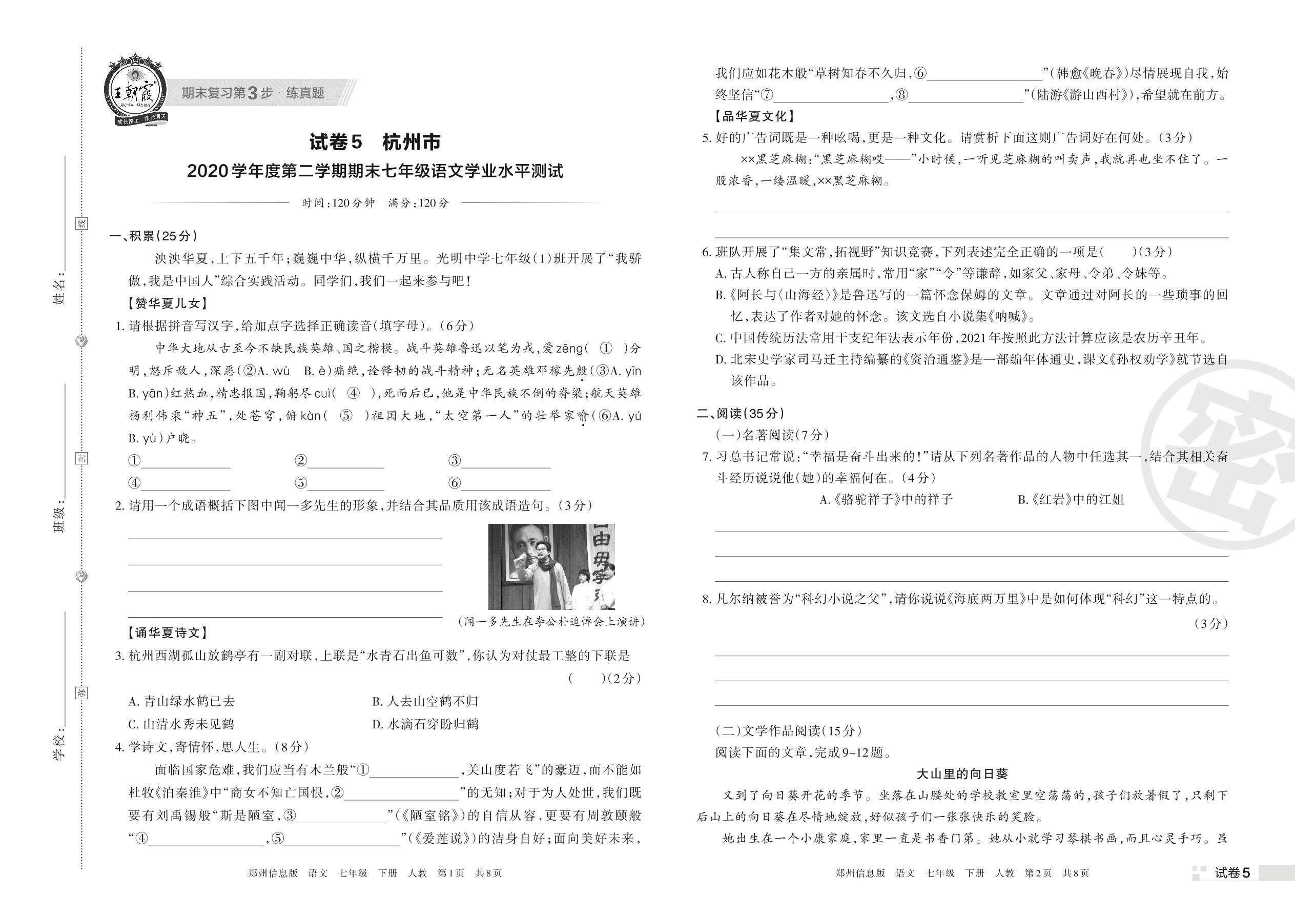 杭州市2020学年度第二学期期末七年级语文学业水平测试(人教版)【5】